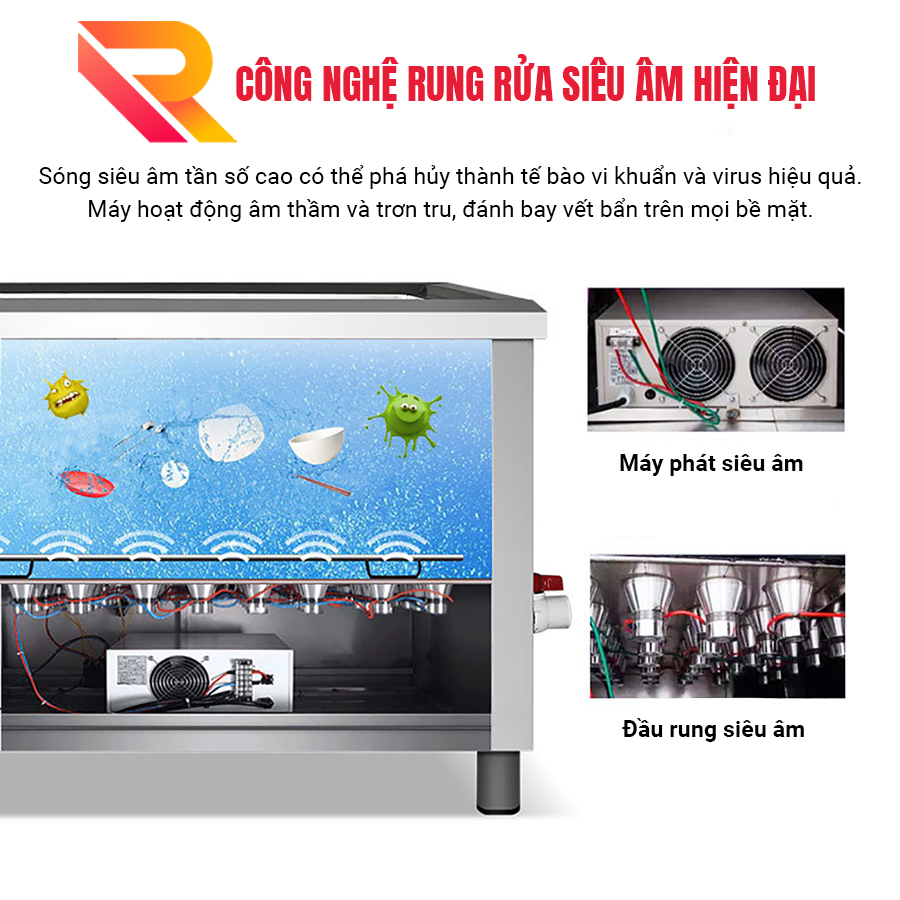 ✨Máy rửa bát sóng siêu âm nhà hàng Rama RB800 dung tích 108L - Hàng chính hãng
