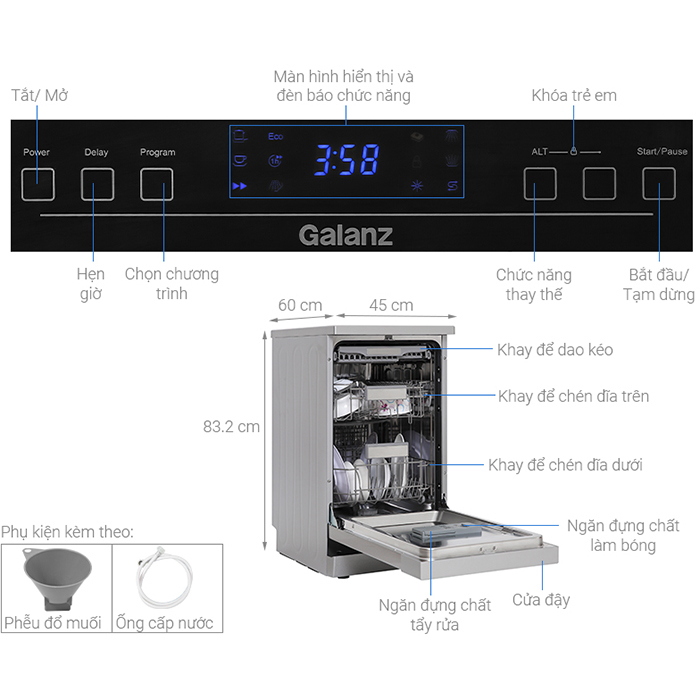 Máy rửa chén độc lập có sấy Galanz W45A3A401M-0E1 2021 - dienmaytonkho.com