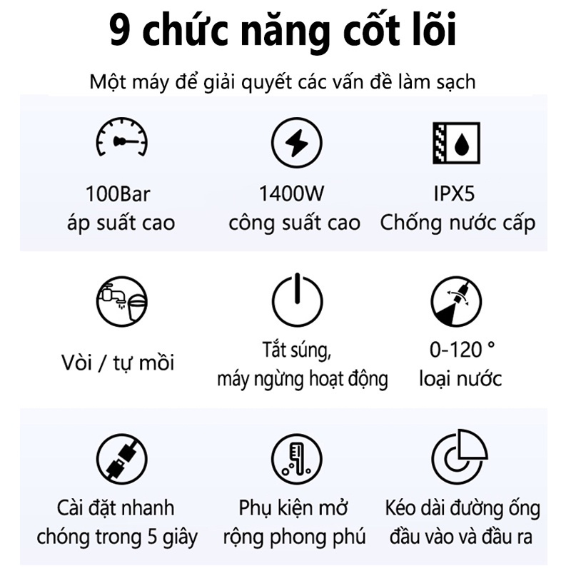- Thông số kỹ thuật: Máy rửa xe lõi đồng công suất 2300W PHIPOL TOOLS QXJ05 tặng kèm nhiều phụ kiện - Hàng Chính Hãng - Máy kèm dây rửa xe 15m, dây bọc lõi