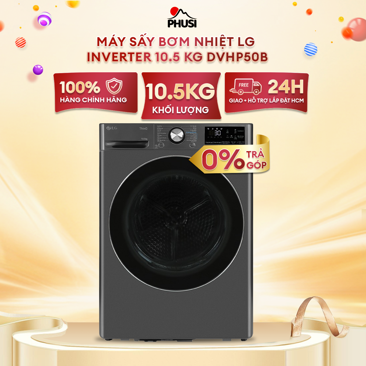 ✨Máy sấy bơm nhiệt LG DVHP50B 10 kg Inverter - Hàng chính hãng (Chỉ giao HCM)