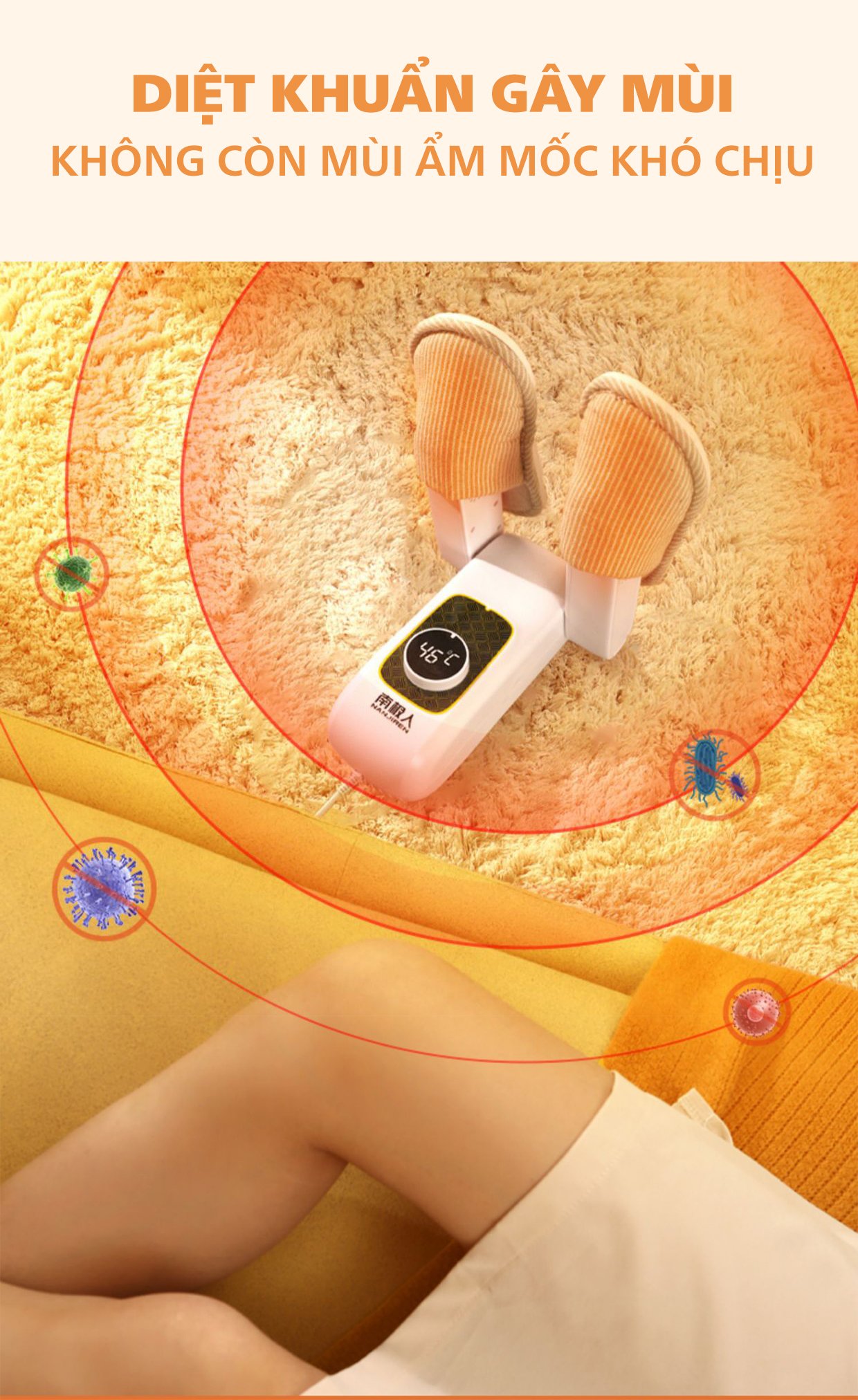 Máy sấy giày đa năng khử trùng thông minh bằng tia cực tím khử mùi giày tất găng tay Tính năng nổi bật. - Thiết kế không khí nóng 3 chiều 360 làm cho khô