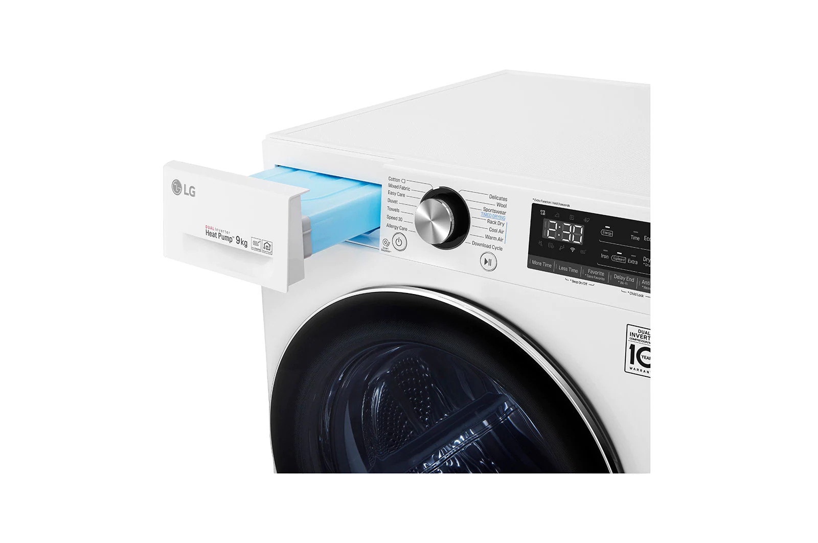 LG DVHP09W đáp ứng khối lượng quần áo sấy đến 9kg, phù hợp cho những hộ gia đình có số thành viên từ 3 - 5 người.