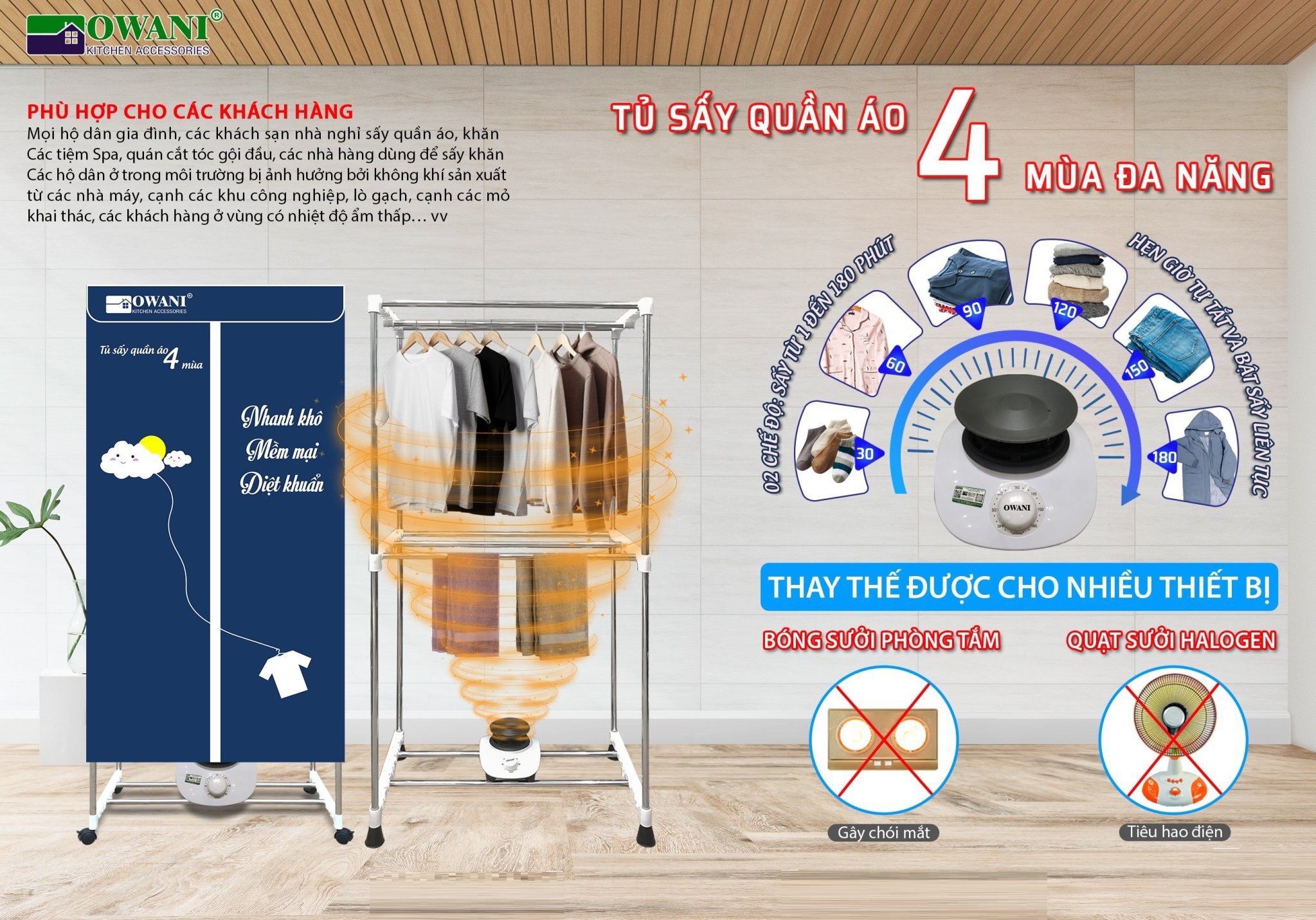 Sấy Khô Nhanh Chóng, Đảm Bảo Quần Áo Luôn Thơm Mát và Khô Rộng Cả Mùa Mưa - Tủ Sấy Quần Áo Đa Năng Saiko CD-1900 Gia đình từ 2-4 người luôn đặt ra câu