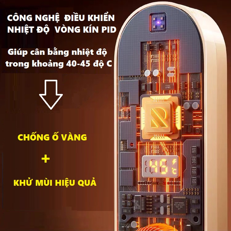 - Máy sấy giày có tích hợp bộ phận làm nóng PTC, nhiệt độ lõi lên tới 150 độ, ức chế sự phát triển của vi khuẩn, loại bỏ mùi hôi - Lõi tản nhiệt