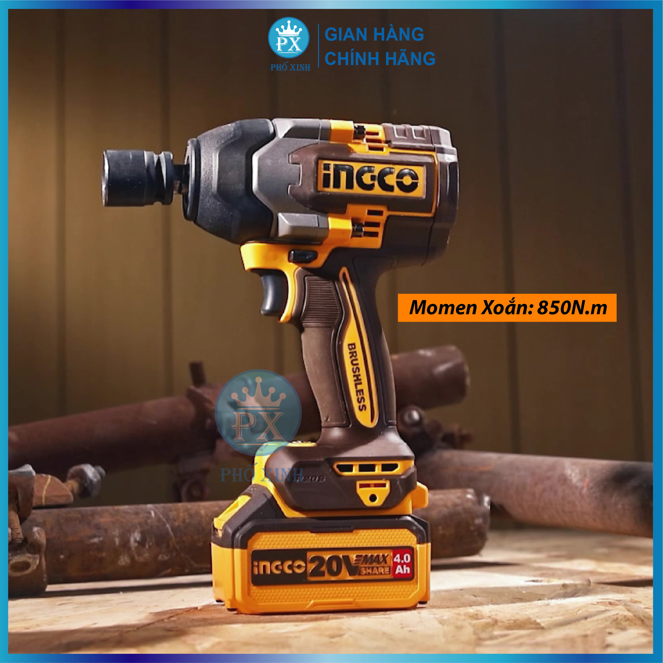 Máy siết bulong INGCO 850NM xe ô tô xe máy xe tải tháo mở ốc bulong pin KHÔNG CHỔI THAN CIWLI2085 kèm 1 sạc 2 pin 4ah và Bộ thân máy CIWLI20851