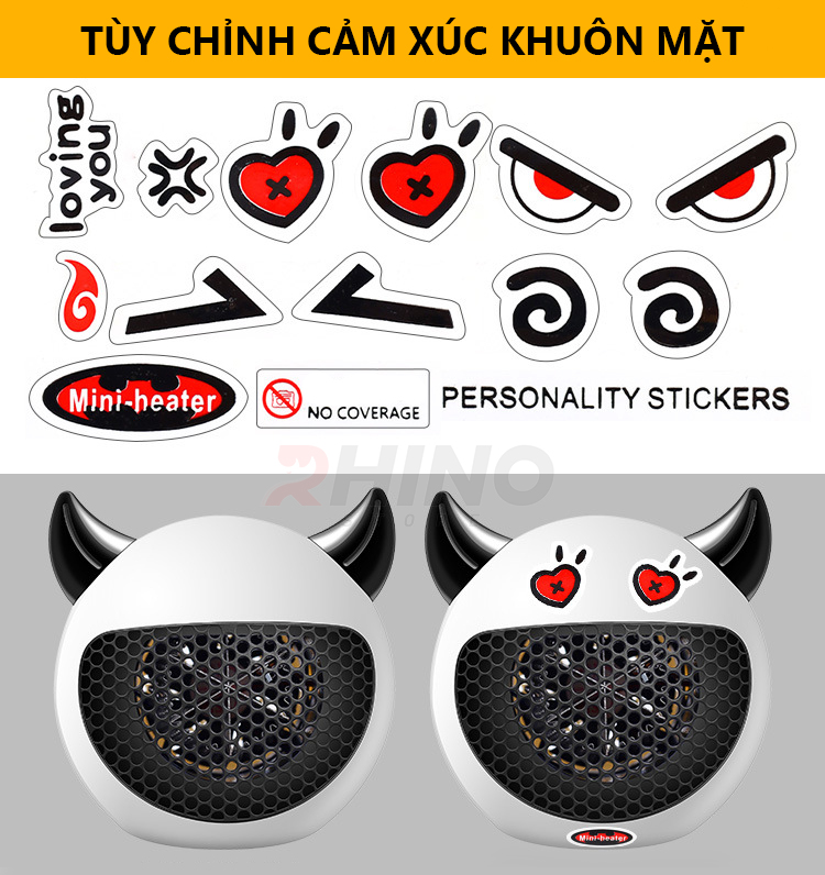 ✨Máy sưởi ấm mùa đông mini Rhino W201 - quạt sưởi tiểu quỷ để bàn văn phòng, kèm bộ sticker cảm xúc tùy chỉnh - Hàng chính hãng