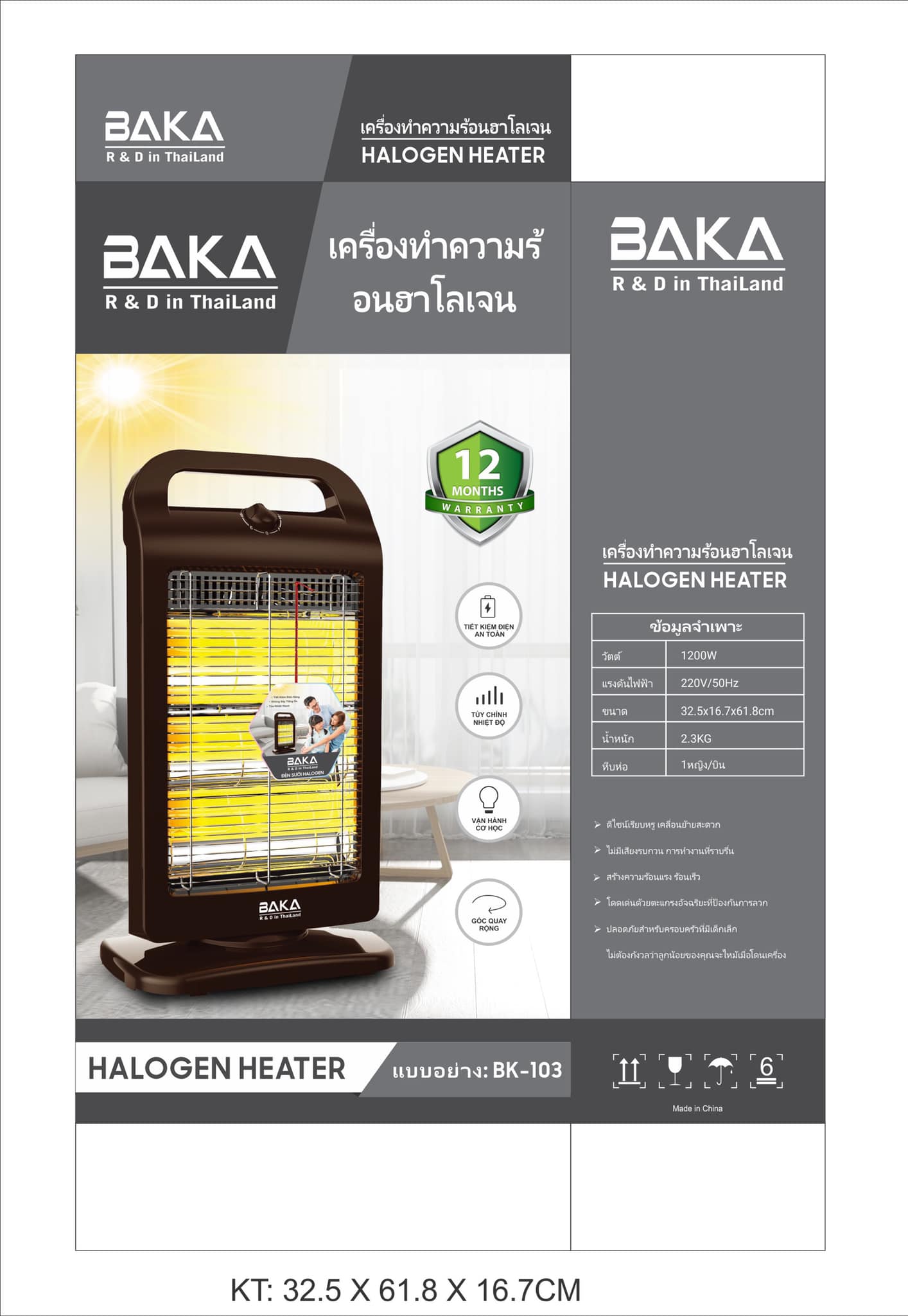 - Tự động ngắt điện khi quạt bị nghiêng hay đổ Máy Sưởi Đèn Sưởi Điện Hồng Ngoại 3 Bóng BAKA BK-103 - Hàng Chính Hãng là một trong những thiết bị sưởi ấm không thể thiếu tại gia đình trong mùa đông. Sản phẩm sử dụng đèn Halogen, tỏa nhiệt đều, làm ấm nhanh, không gây khó thở và khô da, đảm bảo an toàn cho người sử dụng. Kiểu dáng sang trọng, hiện đại Máy Sưởi Đèn Sưởi Điện Hồng Ngoại 3 Bóng BAKA BK-103 - Hàng Chính Hãng có thiết kế sang trọng hơn, kiểu dáng hiện đại và bắt mắt, nhỏ gọn tiết kiệm diện tích và phù hợp mọi không gian như phòng khách, phòng ngủ, Điều khiển dễ dàng bằng nút xoay Máy Sưởi Đèn Sưởi Điện Hồng Ngoại 3 Bóng BAKA BK-103 - Hàng Chính Hãng 400W, 800W, 1200W điều chỉnh bằng núm vặn linh hoạt theo 2 chiều giúp bạn dễ dàng lựa chọn được mức nhiệt phù hợp với môi trường và nhu cầu sử dụng. Chắc chắn, bền đẹp, an toàn Máy Sưởi Đèn Sưởi Điện Hồng Ngoại 3 Bóng BAKA BK-103 - Hàng Chính Hãng có chân đế vững chãi, lưới bảo vệ, tránh gây bỏng cho người dùng. Đặc biệt, lồng và vỏ nhựa phía sau chống cháy tuyệt đối, lưới tản nhiệt giúp sản phẩm không bị hư hỏng do quá nóng. TỎA NHIỆT ĐỀU, KHÔNG GÂY KHÔ DA Làm ấm cực nhanh, không gây khô da Máy Sưởi Đèn Sưởi Điện Hồng Ngoại 3 Bóng BAKA BK-103 - Hàng Chính Hãng sử dụng đèn halogen, làm ấm cực nhanh, độ bền vượt trội, chống chói mắt hiệu quả và không đốt cháy oxy nên không gây khó thở hay khô da khi dùng. Quay đảo chiều, tỏa nhiệt đều khắp phòng Sản phẩm có khả năng quay đảo chiều liên tục, giúp tỏa nhiệt đều khắp phòng, rất thích hợp khi sử dụng tại không gian rộng như phòng khách hoặc phòng có nhiều người. An toàn với người sử dụng Máy Sưởi Đèn Sưởi Điện Hồng Ngoại 3 Bóng BAKA BK-103 - Hàng Chính Hãng có chế độ tự động ngắt điện khi bị nghiêng đổ và hoạt động trở lại bình thường trở lại trạng thái an toàn. Thông số kỹ thuật