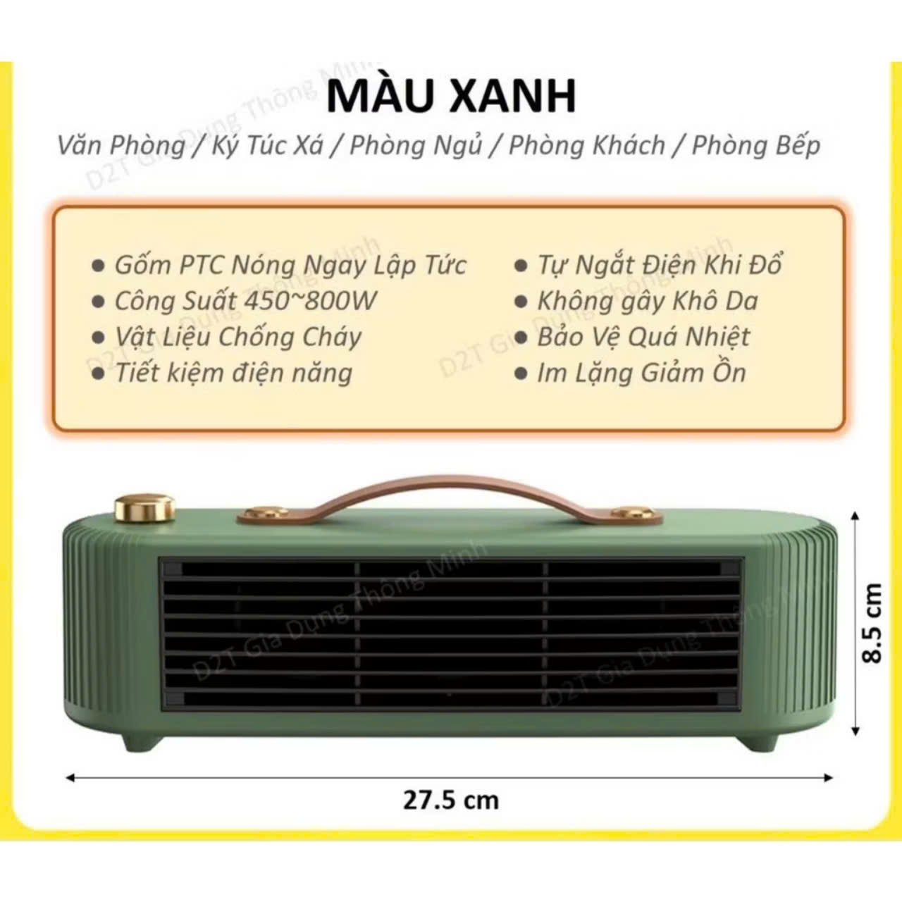 Công suất: 1500W Chế độ hẹn giờ: Tự động tắt máy sau một thời gian cài đặt Chế độ an toàn: Tự động tắt máy khi quá nhiệt hoặc bị đổ Tính năng: Thanh nhiệt PTC giữ nhiệt độ