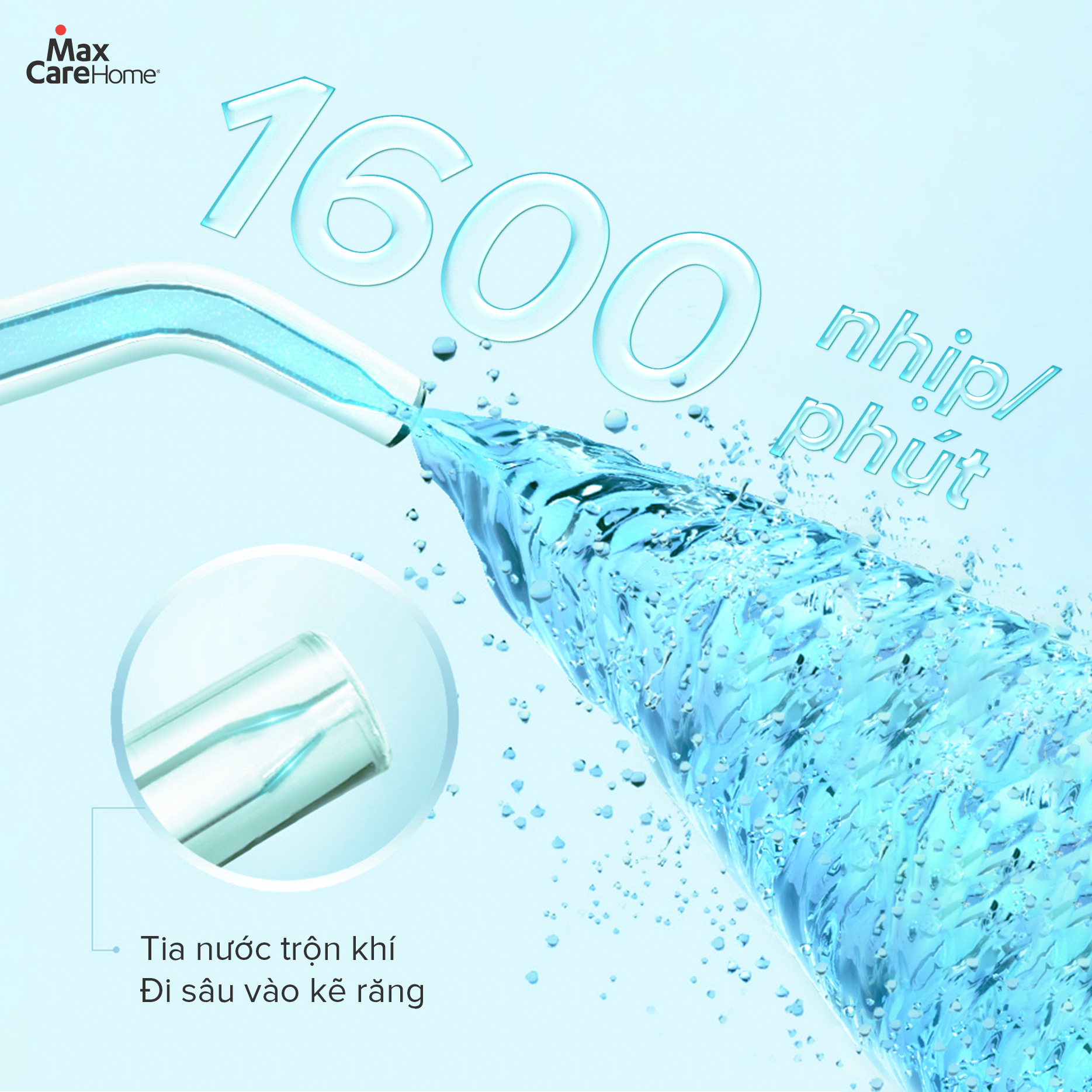 Máy tăm nước MAXVI chăm sóc răng miệng tuyệt vời nhất Máy tăm nước Maxvi xịt tia nước có áp suất đến 100 PSI, tần số xung nước đến 1.800 lần/phút. Tùy theo từng vị trí và thời điểm, có
