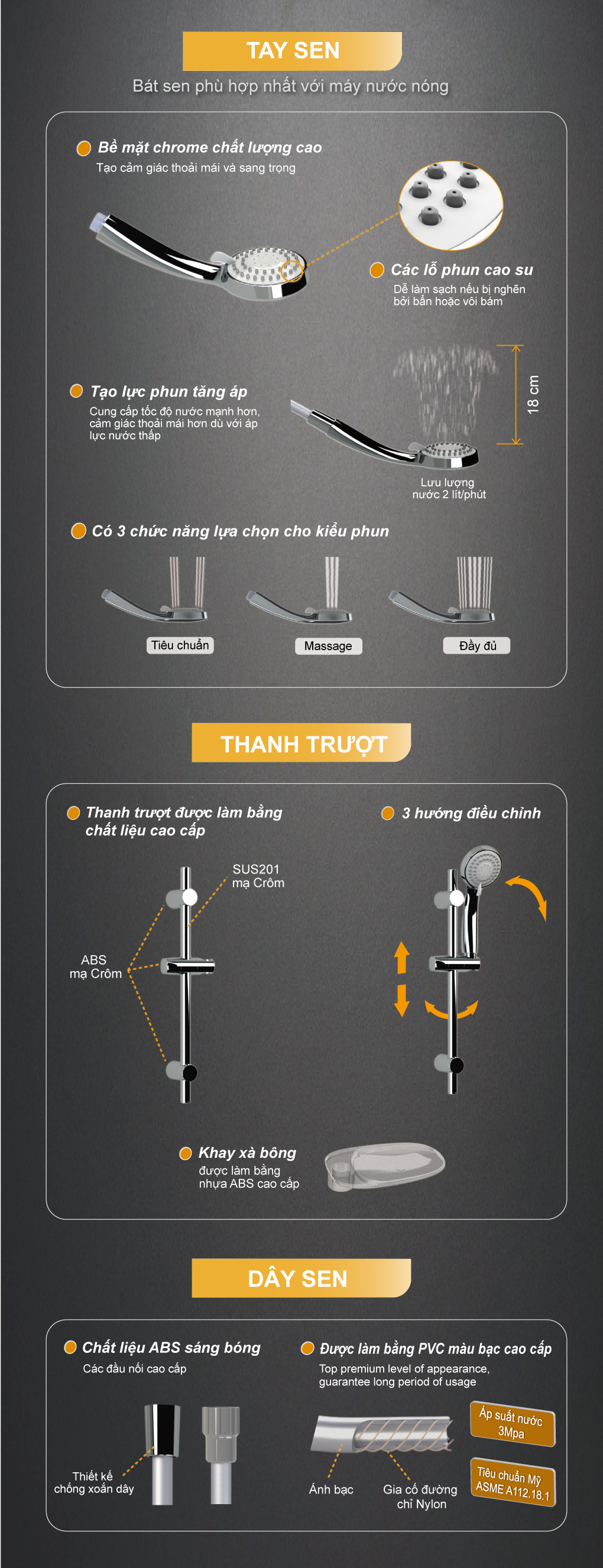 - Bơm siêu êm, gia tăng đáng kể áp lực nước, giúp tắm sảng khoái hơn ngay cả khi áp lực nước đầu vào rất thấp