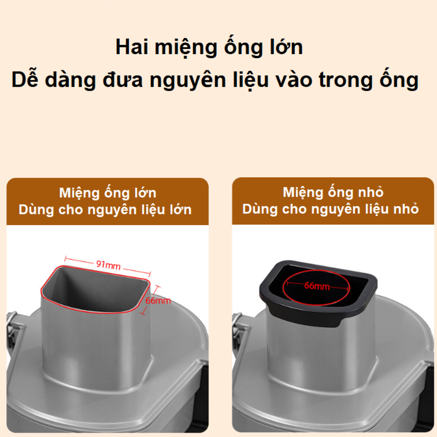 • Miệng ống lớn, giúp cắt nhiều nguyên liệu