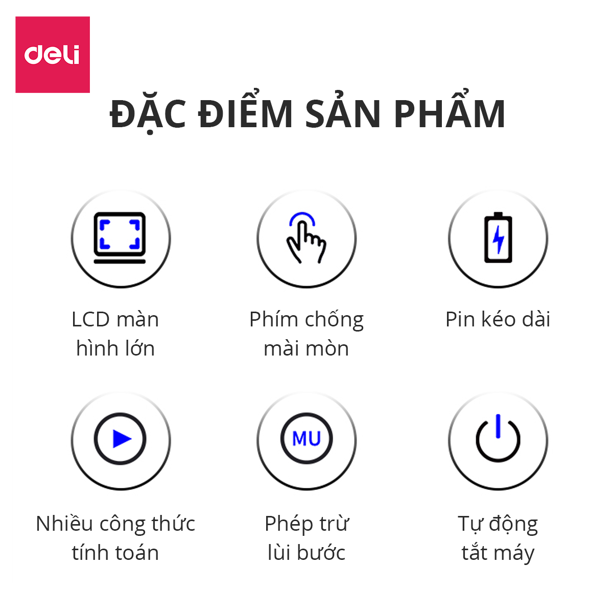 Máy tính để bàn 12 số Deli TÍNH NĂNG SẢN PHẨM: - Chất liệu kim loại siêu bền - ️Màn hình LCD lớn tráng mica - ️Đạt chứng nhận CE về chất lượng cao -