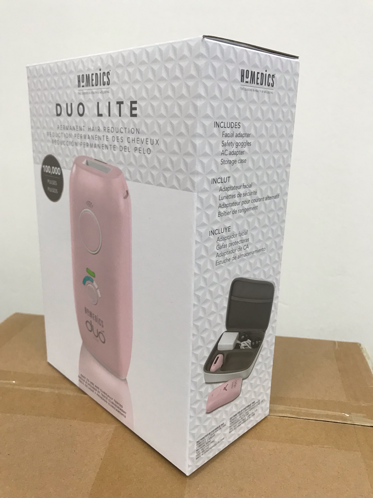 Thiết bị triệt lông Duo Lite IPL của HoMedics là một thiết bị triệt lông tại nhà dễ sử dụng. Công nghệ huỳnh quang tiên tiến (AFT) Freeglide và Intense Pulse Light (IPL) cung cấp các phương pháp điều trị linh hoạt đem lại hiệu quả cao nhất trong các công nghệ triệt lông. Năm cấp độ điều trị cho phép tùy chỉnh có kiểm soát đối với các bộ phận khác nhau của cơ thể và từng vùng da khác nhau . Sử dụng dễ dàng với các vùng da nhậy cảm như vùng mặt , vùng bikini với đầu bắn chuyên biệt giành cho vùng da này.