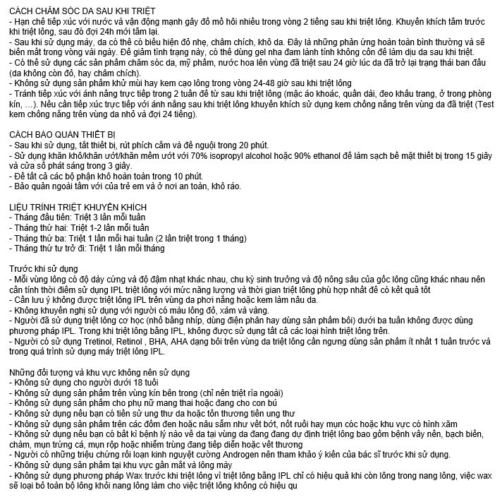 - 4 Chế độ triệt & 5 Cường độ ánh sáng: Có thể điều chỉnh phù hợp với mọi loại da