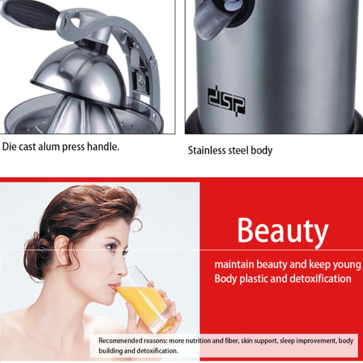 Máy vắt cam gia đình DSP công suất 40W - Dung tích bình 1 lít ước trái cây thơm ngon, bổ dưỡng mà còn góp phần tô điểm cho không gian bếp thêm tiện nghi,