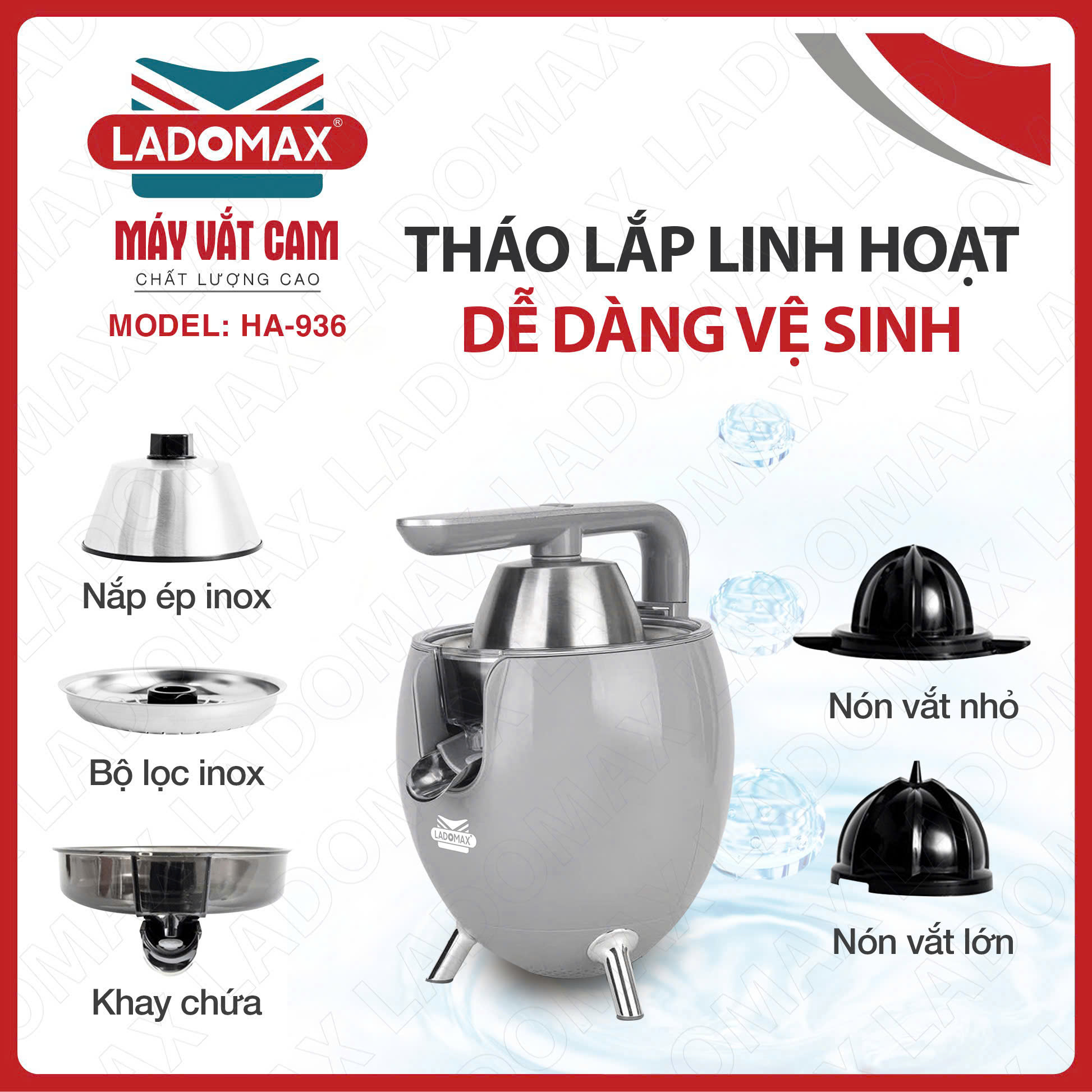 ✨Máy vắt cam công nghiệp Ladomax Ha936 - công suất 860W - Moto đồng - có linh kiện thay thế - Hàng chính hãng