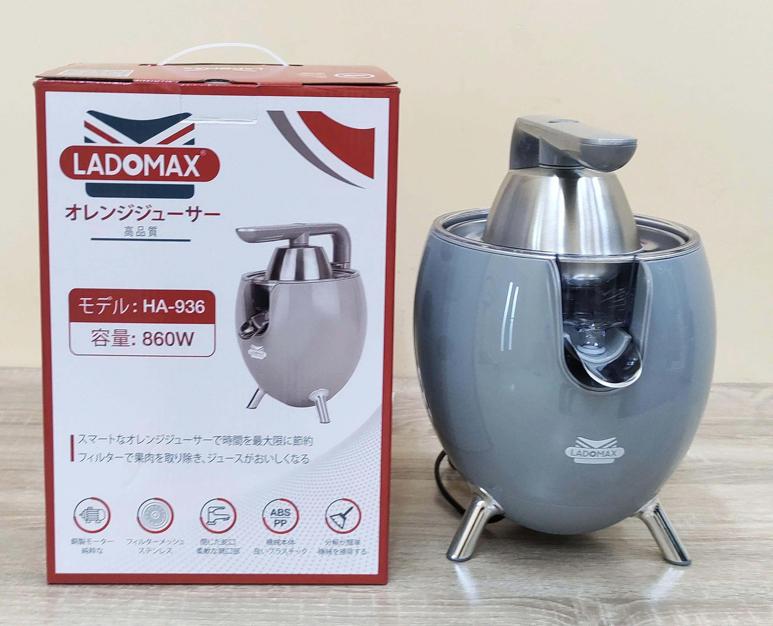 Thông tin sản phẩm Thương hiệu: Ladomax Máy: Máy vắt cam, vắt chanh Công suât: 860W Model :HA936 Núm: 2 đầu nấm lớn nhỏ Khay lọc: Inox Điện áp: 220-240V, 50/60HZ Bảo hành 12 tháng
