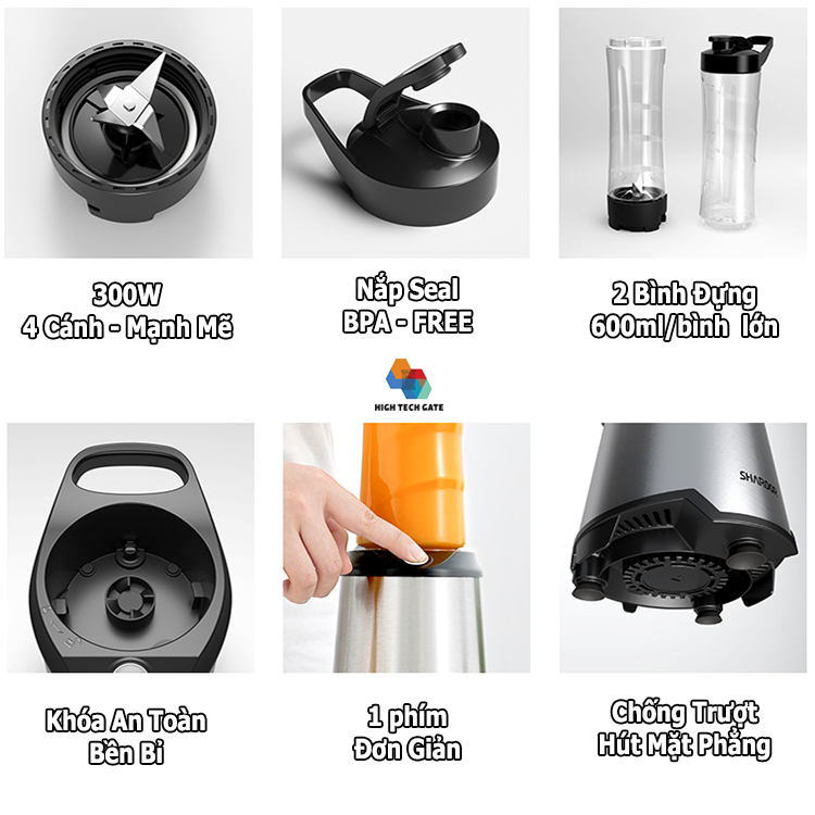 - Công suất: 500W - Chất liệu: Nhựa BPA free, thép không gỉ, an toàn với thực phẩm - Công nghệ Quadblade tiên tiến - Hệ thống khóa tự động