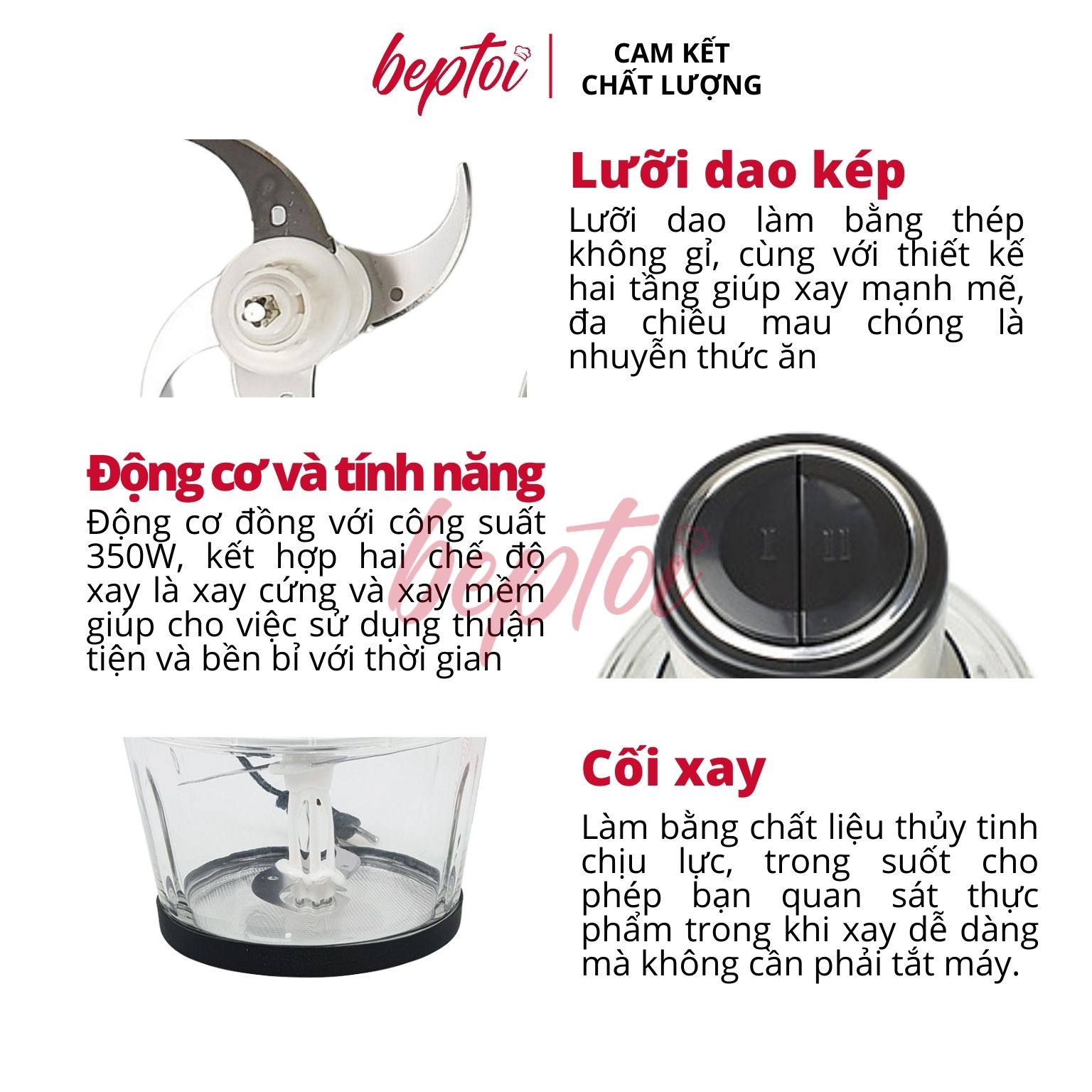 ️ ĐIỂM ĐẶC TRƯNG CỦA SẢN PHẨM - Thiết kế nhỏ gọn, dễ dàng cầm nắm khi sử dụng xay thực phẩm. - Dễ dàng xay nhuyễn thực phẩm với lưỡi dao sắc bén. -