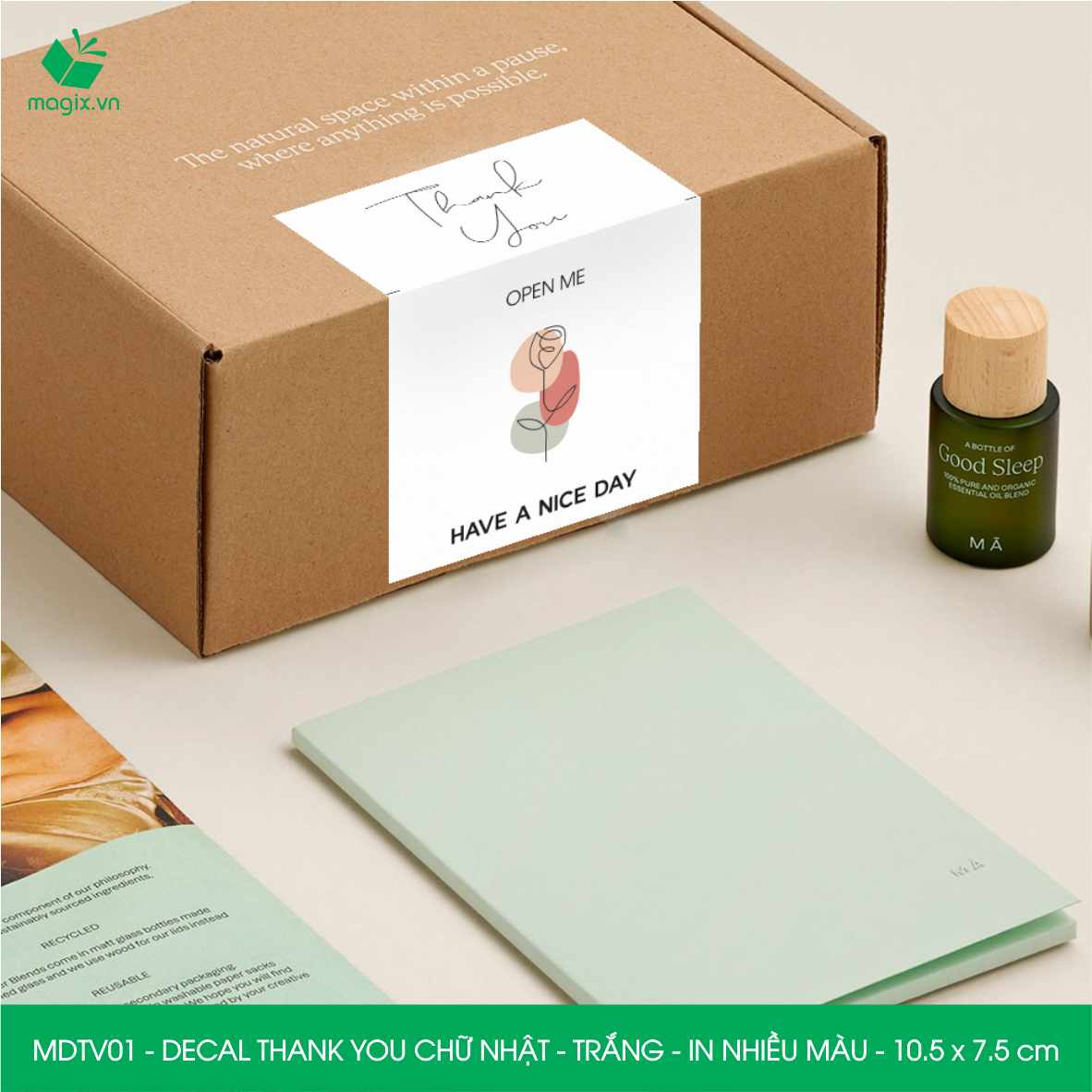 Chất liệu: Decal Thank You được làm từ giấy decal 3 lớp trên bề mặt được phủ thêm 1 lớp màng mờ, tăng khả năng chống thấm nước giúp decal bền hơn. Ngoài ra khi cán thêm lớp màng mờ sẽ giúp món quà trở lên sang trọng và bắt mắt hơn.