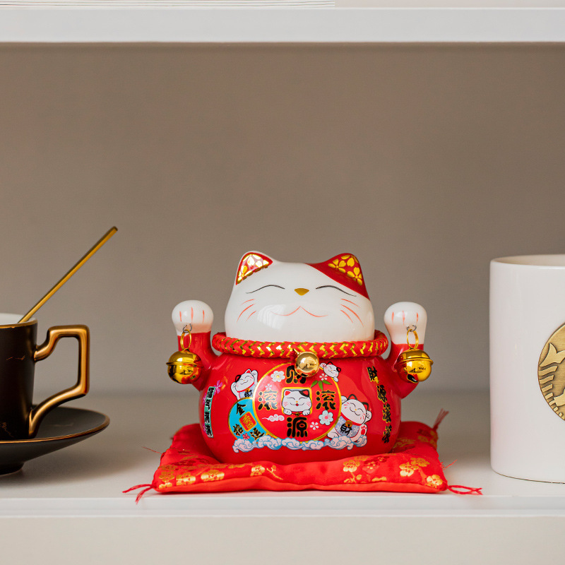 "Mèo thần tài"được coi là một trong những vật phẩm phong thủy tốt nhất với khả năng: Thu hút khách hàng Mang đến vận khí tốt lành Công việc kinh doanh thuận lợi Vạn sự hanh thông Xua tan vận đen Mèo thần tài thường đặt tại cửa hàng, công ty, doanh nghiệp, người ta tin rằng chú mèo sẽ đem đến thật nhiều may mắn, thu hút khách hàng và tiền tài cho gia chủ. Mèo thần tài được làm từ gốm sứ cao cấp, không bị phai màu theo thời gian đảm bảo độ thẩm mỹ tốt nhất