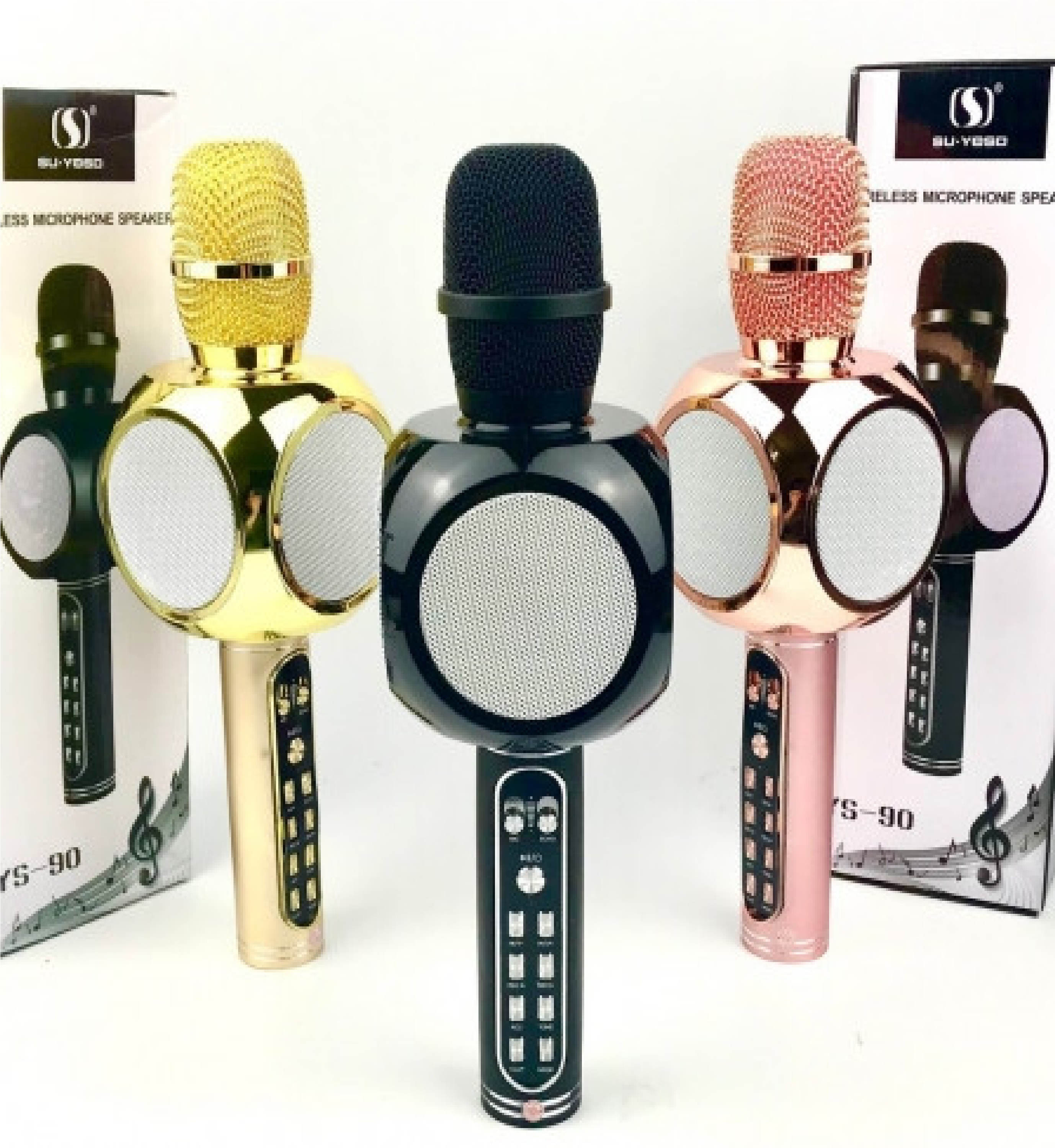 - Mic KARAOKE 3in1 YS-90 (Full box) hát karaoke tích hợp loa bass hay, mic bắt giọng, âm thanh trong lớn, gắn usb, thẻ nhớ, cổng 3.5. Đây là thiết bị giúp kết nối với điện thoại Smartphone thông qua sóng Bluetooth. Tuy kế thừa tất cả các tính năng của sản phẩm đàn anh, tuy nhiên có sự sáng tạo hơn về thiết kế: các góc cạnh được vát tròn, tạo cảm giác hiện đại, sang trọng hơn. Khi sạc đầy có thể hoạt động từ 5-6 tiếng. Sản phẩm phù hợp để mang đi dã ngoại, đi du lịch, các buổi tiệc, họp mặt cùng bạn bè và người thân. Chỉ cần bạn kết nối thiết bị này đến một chiếc điện thoại smartphone thông thường là đã có thể hát hò tẹt ga với âm thanh sôi động, loa to, bass khỏe mang đến cảm giác thích thú, thỏa mãn cho người dùng.