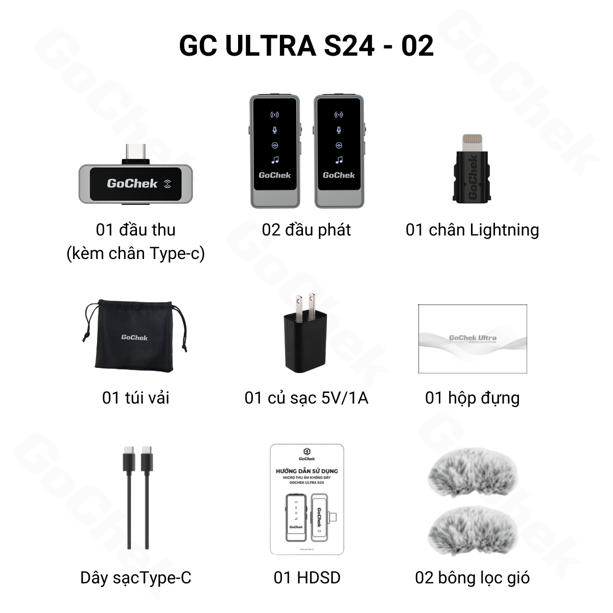 Micro thu âm không dây GoChek Ultra S24, tích hợp 2 chân cắm khi livestream/quay video/ghi âm cho điện thoại/máy tính bảng/PC/Laptop
