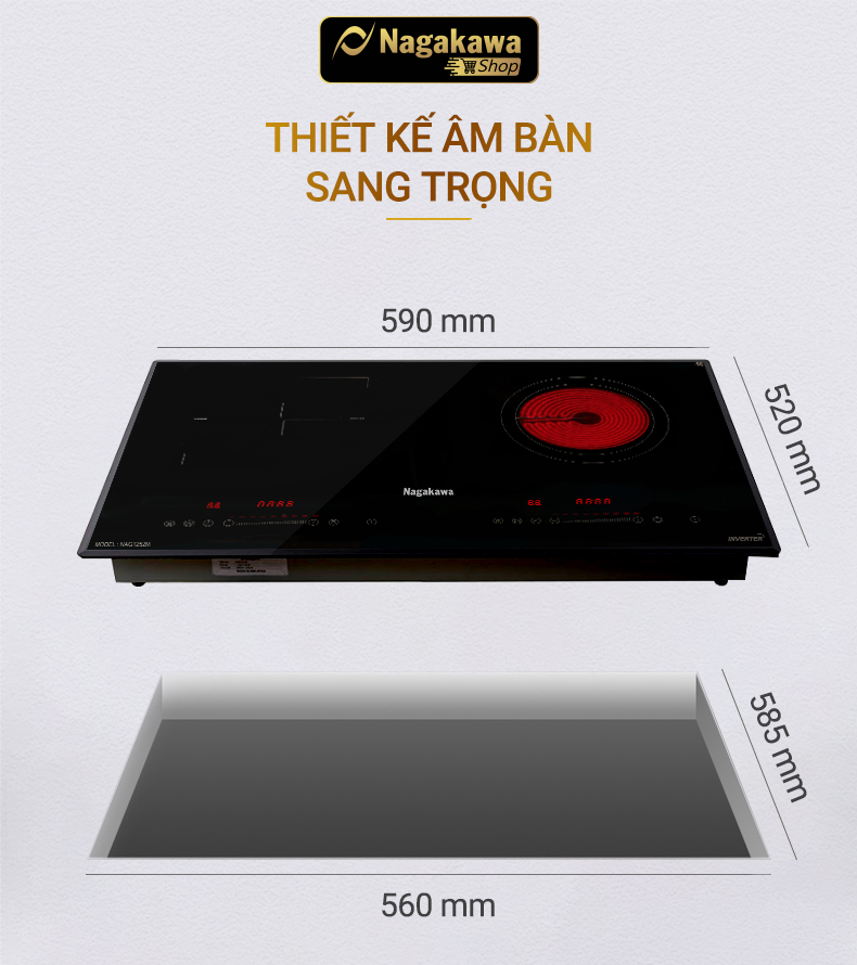 Đặc điểm nổi bật Bếp được tích hợp chức năng NaSYNC - Tự động kết nối điều khiển máy hút mùi nagakawa - Mỏng hơn 30% tiết kiệm không gian tủ bếp - Vật liệu