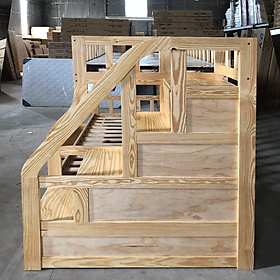 + Chất liệu: Khung giường gỗ thông Newzealand, phân tầng, Vách, đáy hộc gỗ công nghiệp, thang giường MDF chịu lực + Kích thước: kích thước phủ bì, tầng trên ưới 1mx2m Giường tầng hộp