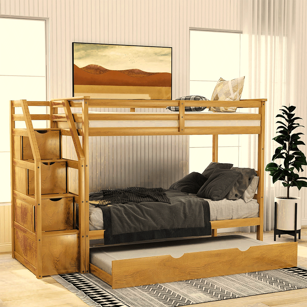Giường tầng oba 1m2 cầu thang hộp #giuongtangnguoilon #giuongtanghanoi #giuongtangtreem