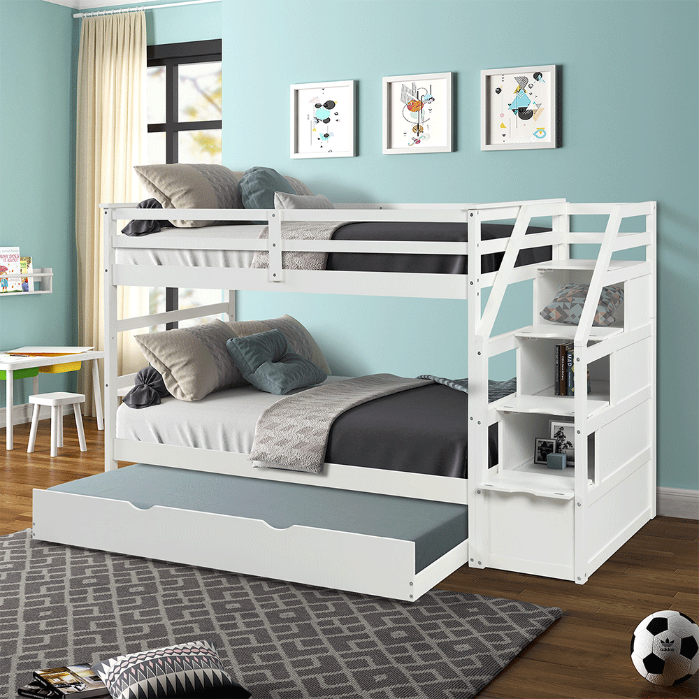 ✨[Miễn phí vận chuyển, lắp đặt] Giường tầng xuất khẩu Newport 1m/1m thang hộp di động-IBIE
