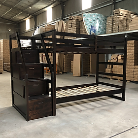 + Chất liệu: Khung giường gỗ thông Newzealand, phân tầng, Vách, đáy hộc gỗ công nghiệp, thang giường MDF chịu lực + Kích thước: kích thước phủ bì, tầng trên ưới 1mx2m Giường tầng hộp