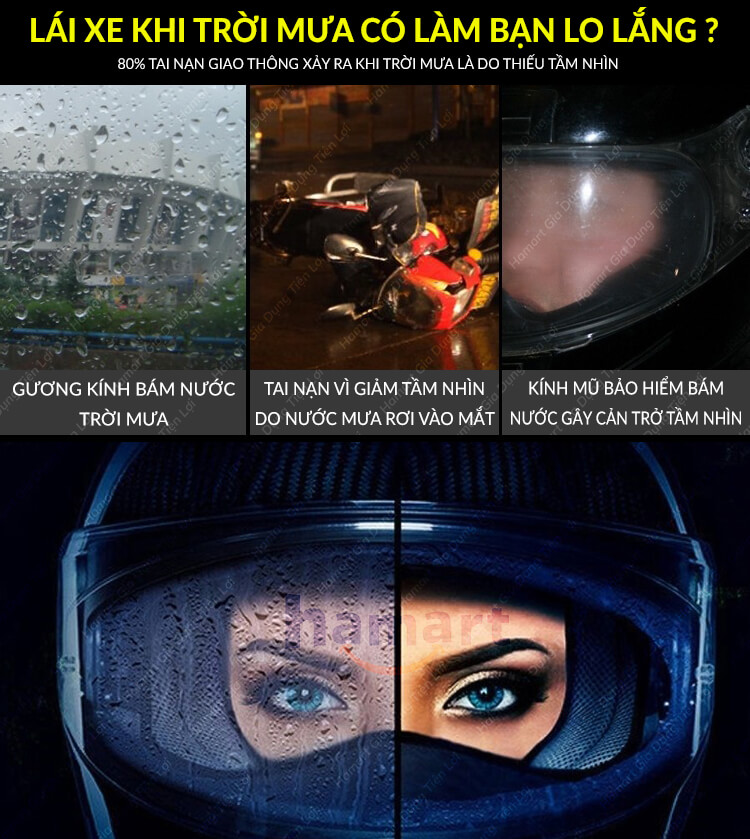 Miếng Dán Chống Nước Mũ Bảo Hiểm Hamart chính là giải pháp tiện lợi cho vấn đề cấp thiết này - Với lớp NANO phủ film nhựa PET sản xuất theo công nghệ mới, chống đọng nước, đọng sương, chống mờ, chống loá thật tuyệt vời khi được hỗ trợ & đồng hành cùng sự an toàn của Bạn & Gia Đình