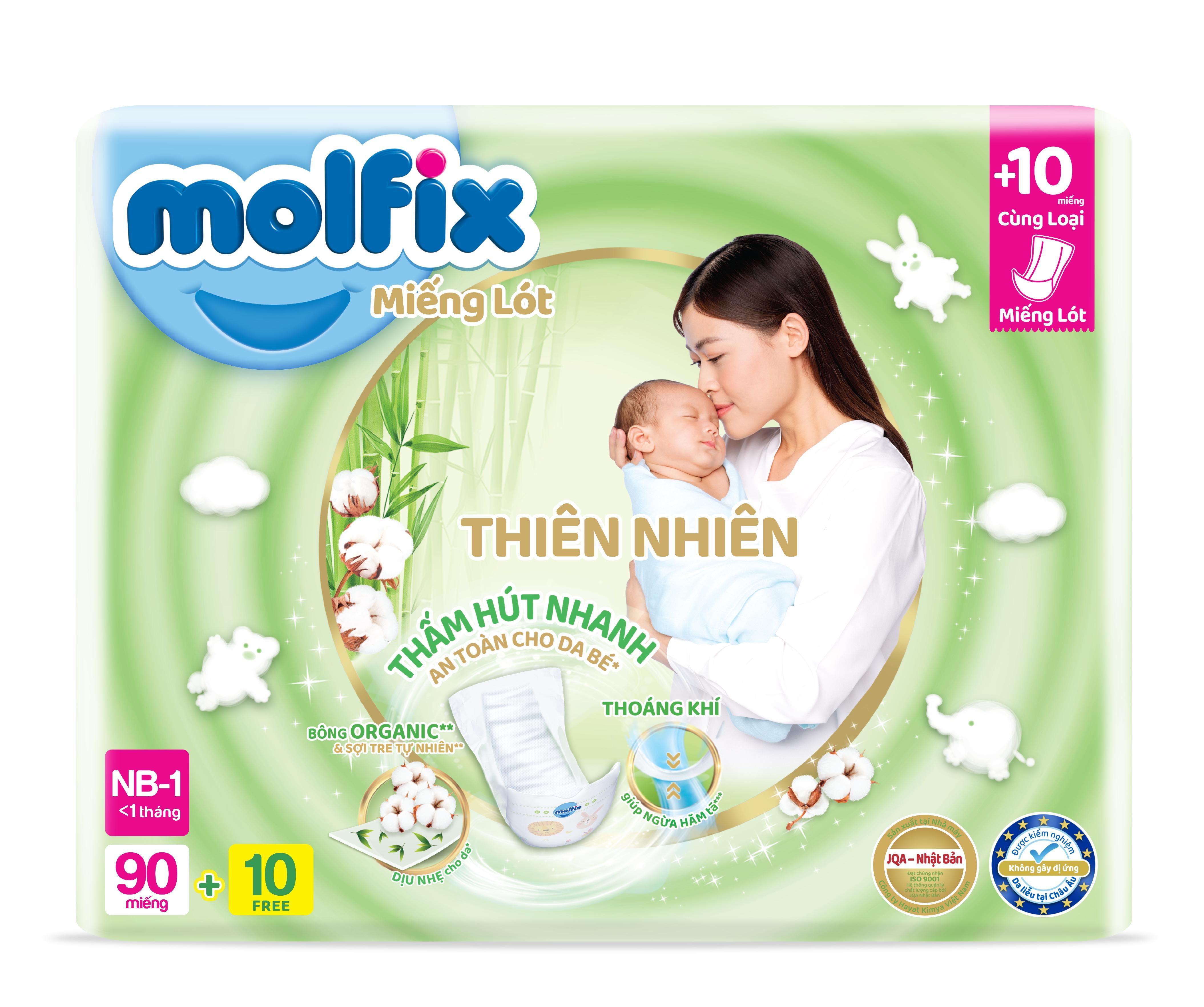 ✨Miếng lót sơ sinh Molfix Thiên nhiên Super Jumbo Newborn 1 (dưới 1 tháng tuổi) - Gói 90+10 miếng