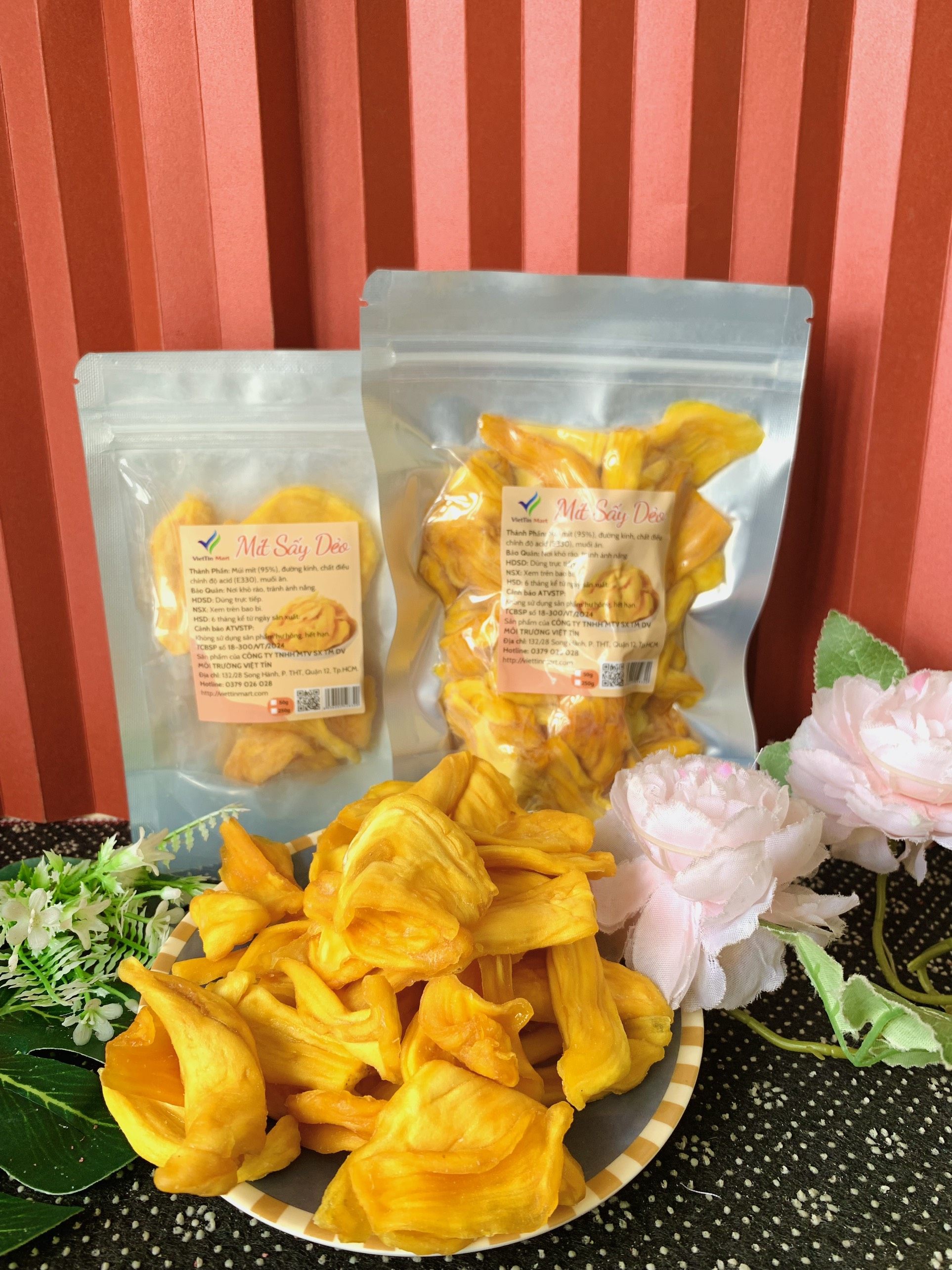 THÔNG TIN SẢN PHẨM Tên sản phẩm: Mít Sấy Dẻo Thơm Ngon VietTin Mart Thành Phần: 100% mít tươi sấy Thương hiệu: Viettin Mart Khối lượng: 50g/250g Quy cách đóng gói : Sản phẩm được