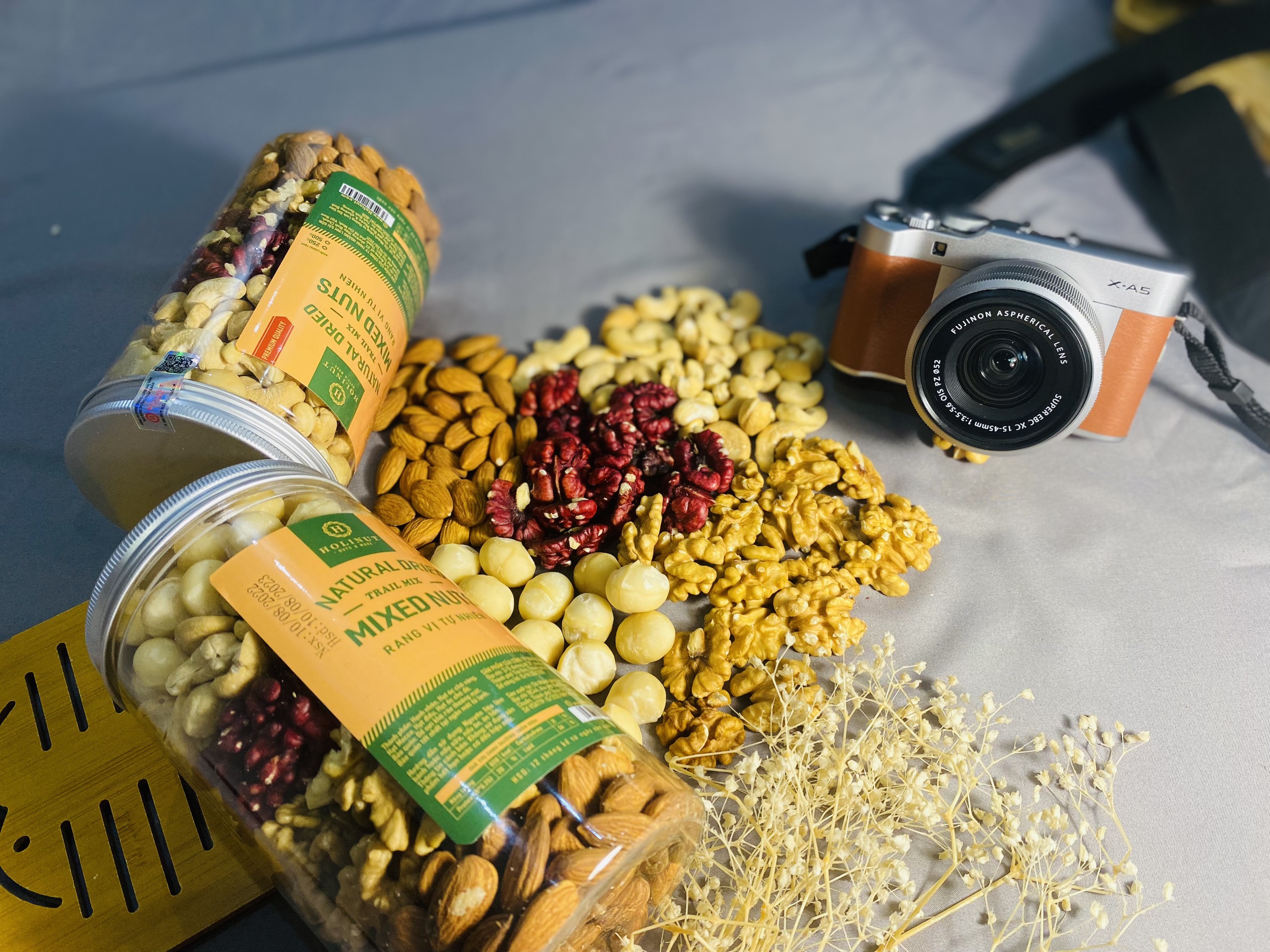 Thành phần: Nhân óc chó vàng, nhân óc chó đỏ, nhân macca, hạt hạnh nhân, hạt điều.