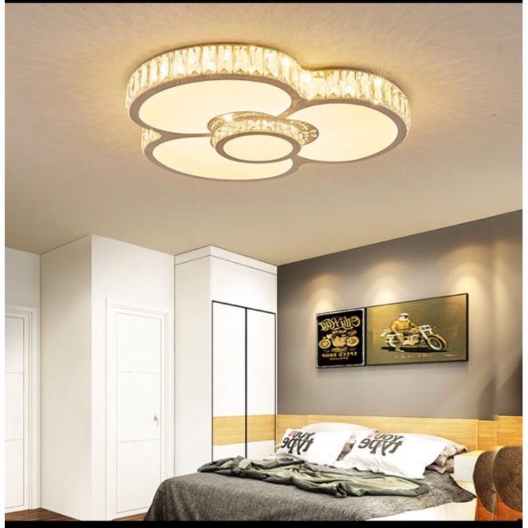Đèn Mâm Ốp Trần Pha lê Trang Trí Phòng Ngủ Phòng Khách Led 3 Màu 220V OT16 Ngân Tin