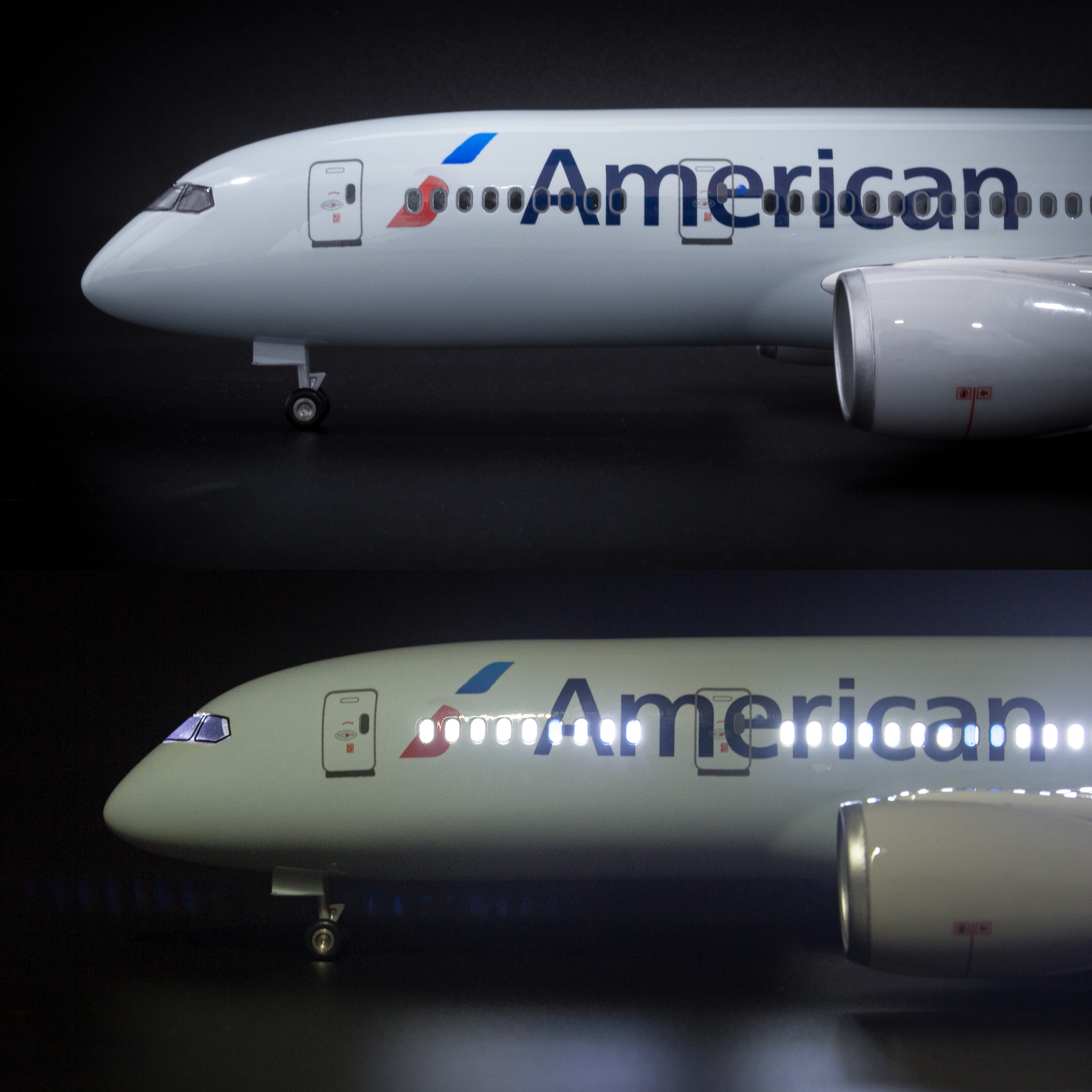 Mô hình máy bay American Airlines Boeing B787 47cm lắp ráp có đèn - JOLAVN