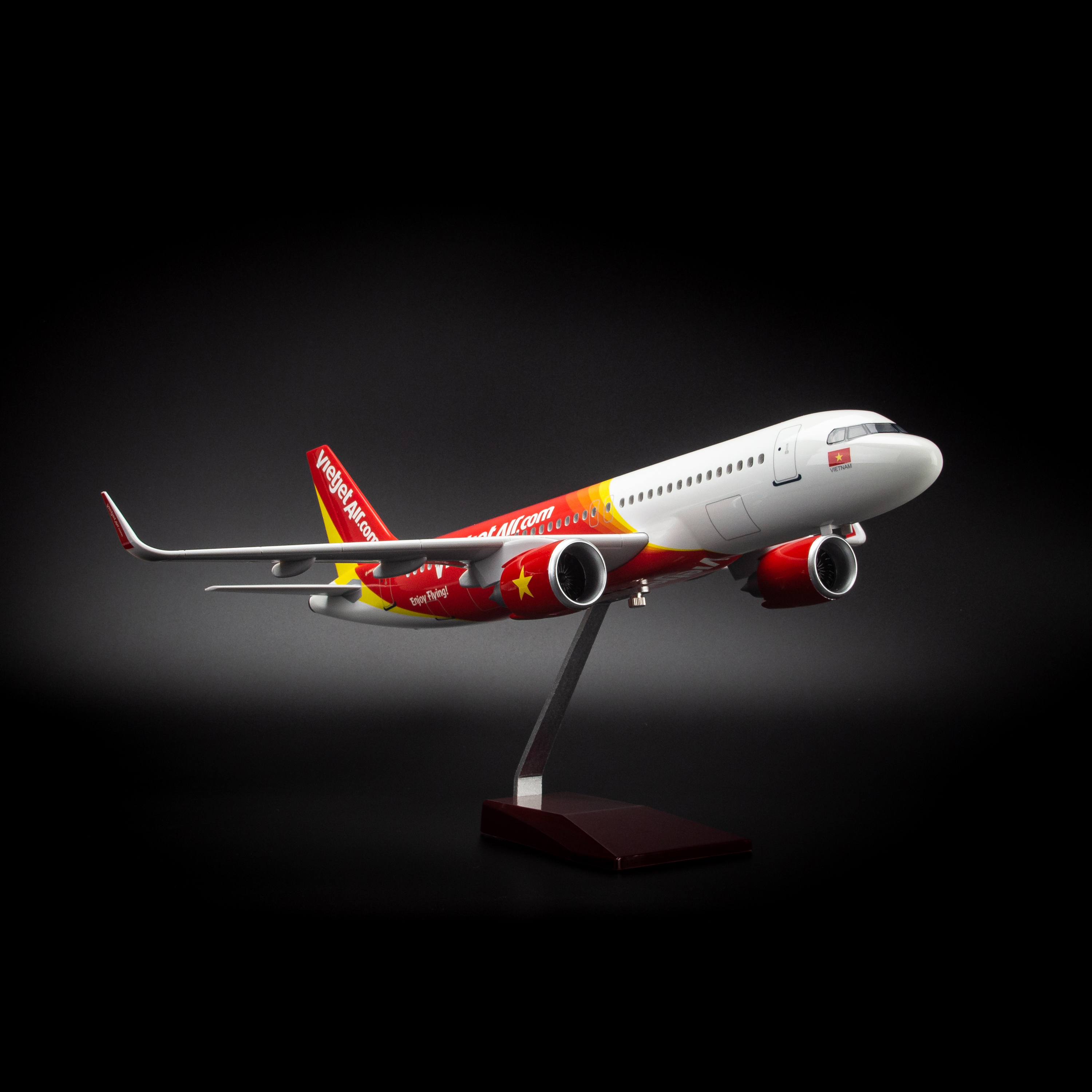 ✨Mô hình máy bay Vietjet Air Airbus A320 lắp ráp có đèn 47cm MBMH46