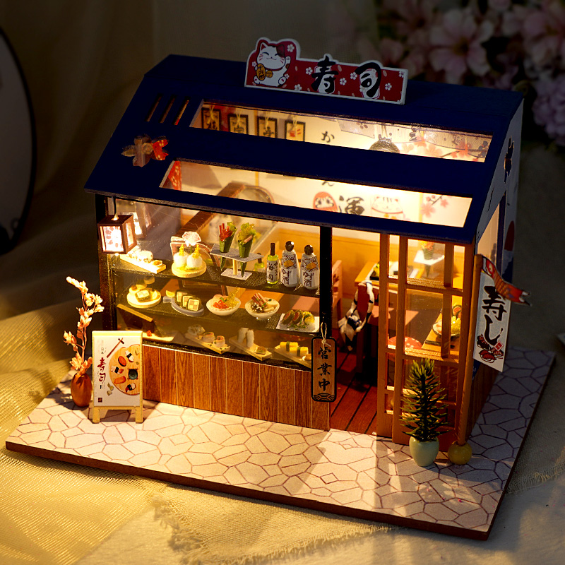 ✨Mô hình nhà búp bê lắp ghép bằng gỗ Mẫu Sushi Shop tặng kèm dụng cụ lắp ghép, keo silicon
