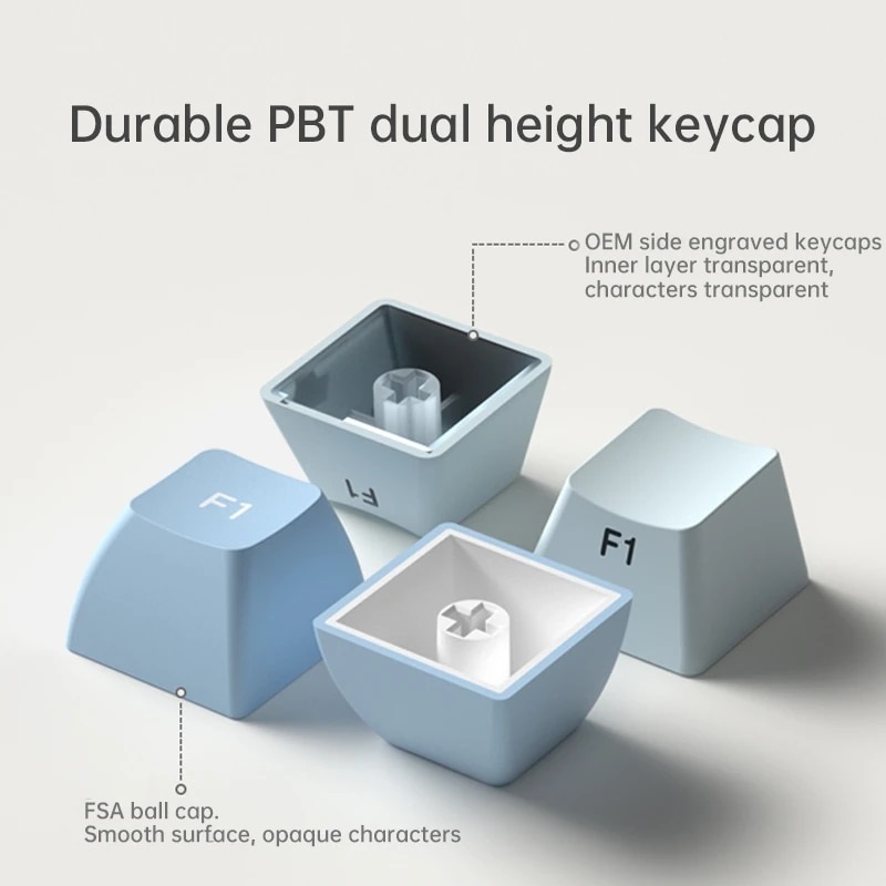 Trục cơ khí Green: Thân trục có tuổi thọ cao hơn 50 triệu lần, nhịp điệu mạnh hơn và trải nghiệm mượt mà hơn Phun kép 2 màu Công nghệ phím phun kép, chống mài