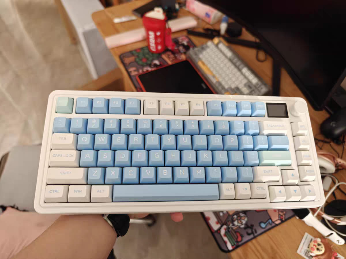 Layout: 75%, (81 keys + 1 Màn hình + 1 Núm xoay)