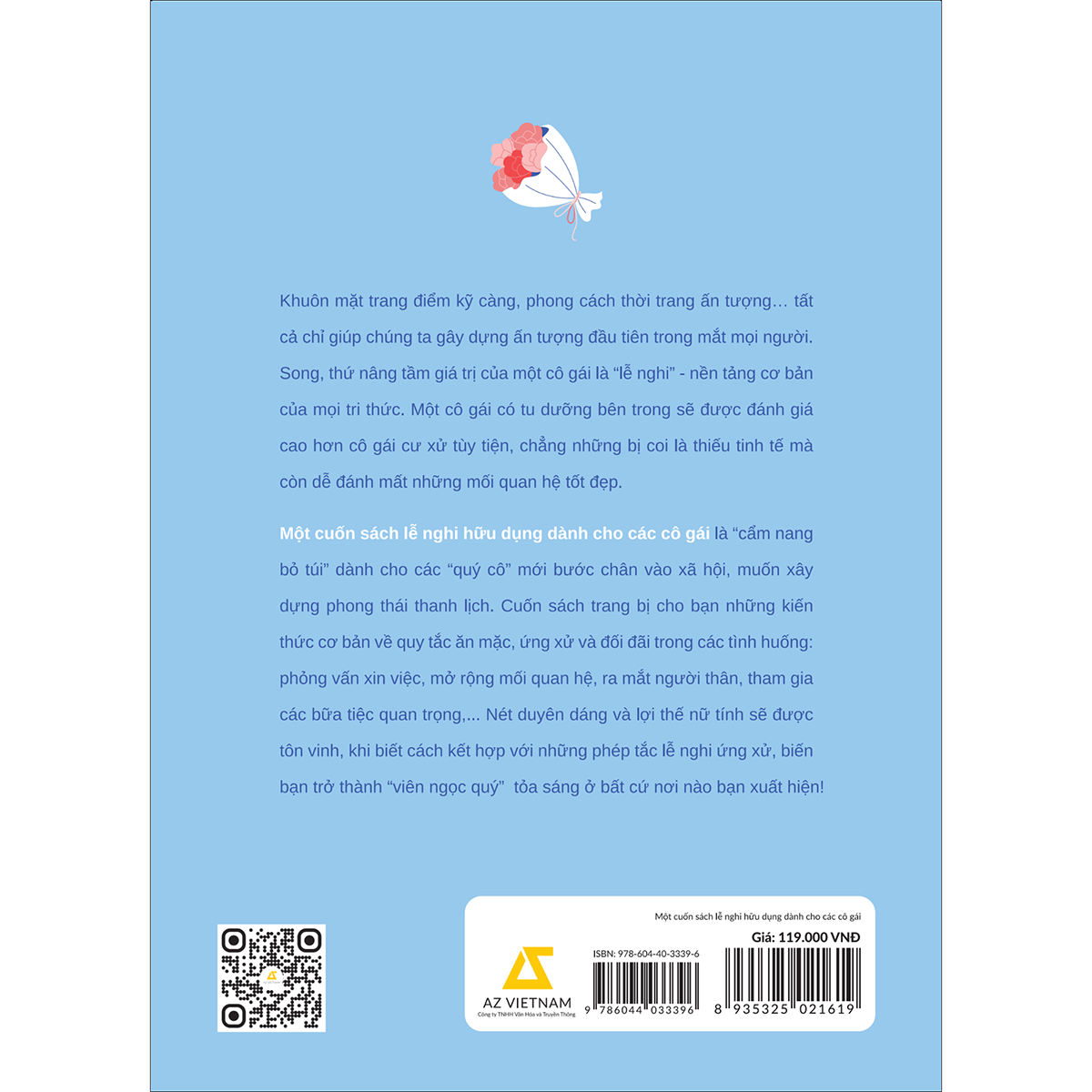 Cuốn sách trang bị cho bạn kiến thức cơ bản về quy tắc ăn mặc, ứng xử và đối đãi trong các tình huống: phỏng vấn xin việc, mở rộng mối quan hệ, ra mắt người thân, tham gia các bữa tiệc quan trọng, để biểu hiện tốt nhất trong các tình huống ứng xử xã hội, dù là gặp mặt trực tiếp hay trao đổi qua mạng, giúp tôn vinh nét duyên dáng và lợi thế nữ tính của các cô gái, tạo nên dấu ấn của một người con gái có tu dưỡng tốt.