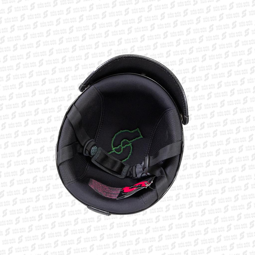 • Phần logo NÓN SƠN được gắn trên vỏ nón bảo hiểm Nón Sơn được làm từ da thật.
