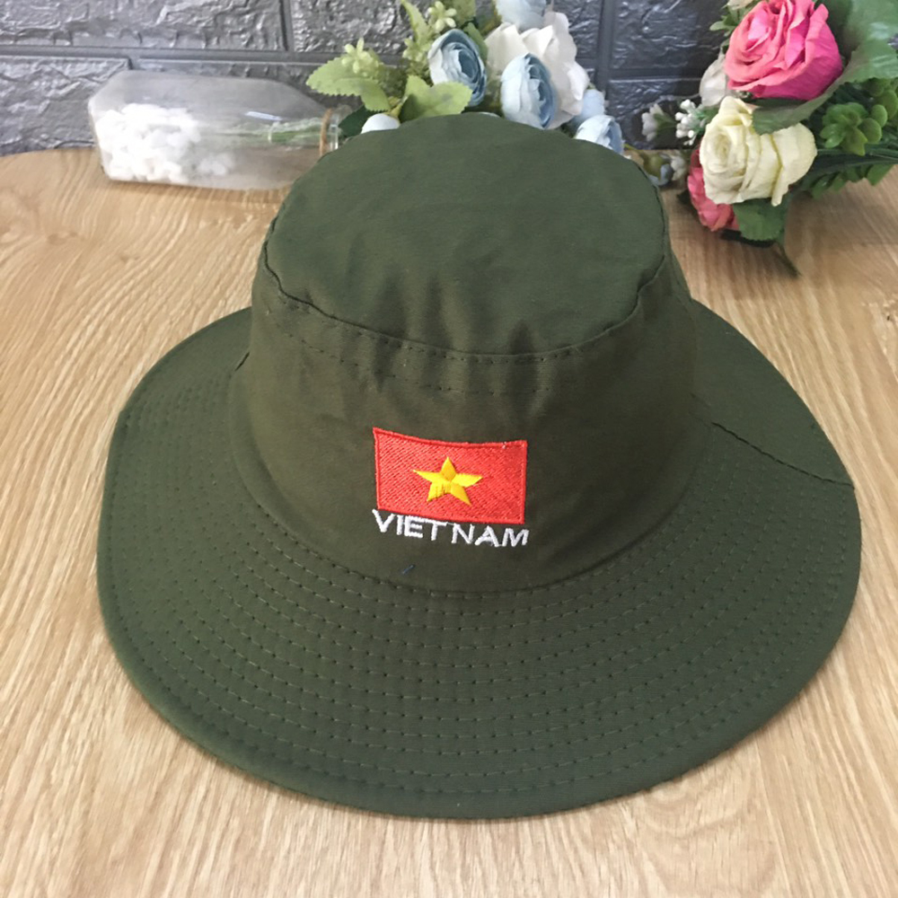 Mũ tai bèo lao động thêu lá cờ Việt Nam, chất vải kaki bền đẹp, vành rộng chống nắng tốt - Hạnh DươngMũ tai bèo lao động thêu lá cờ Việt Nam, chất vải kaki bền đẹp, vành rộng chống nắng tốt - Hạnh Dương