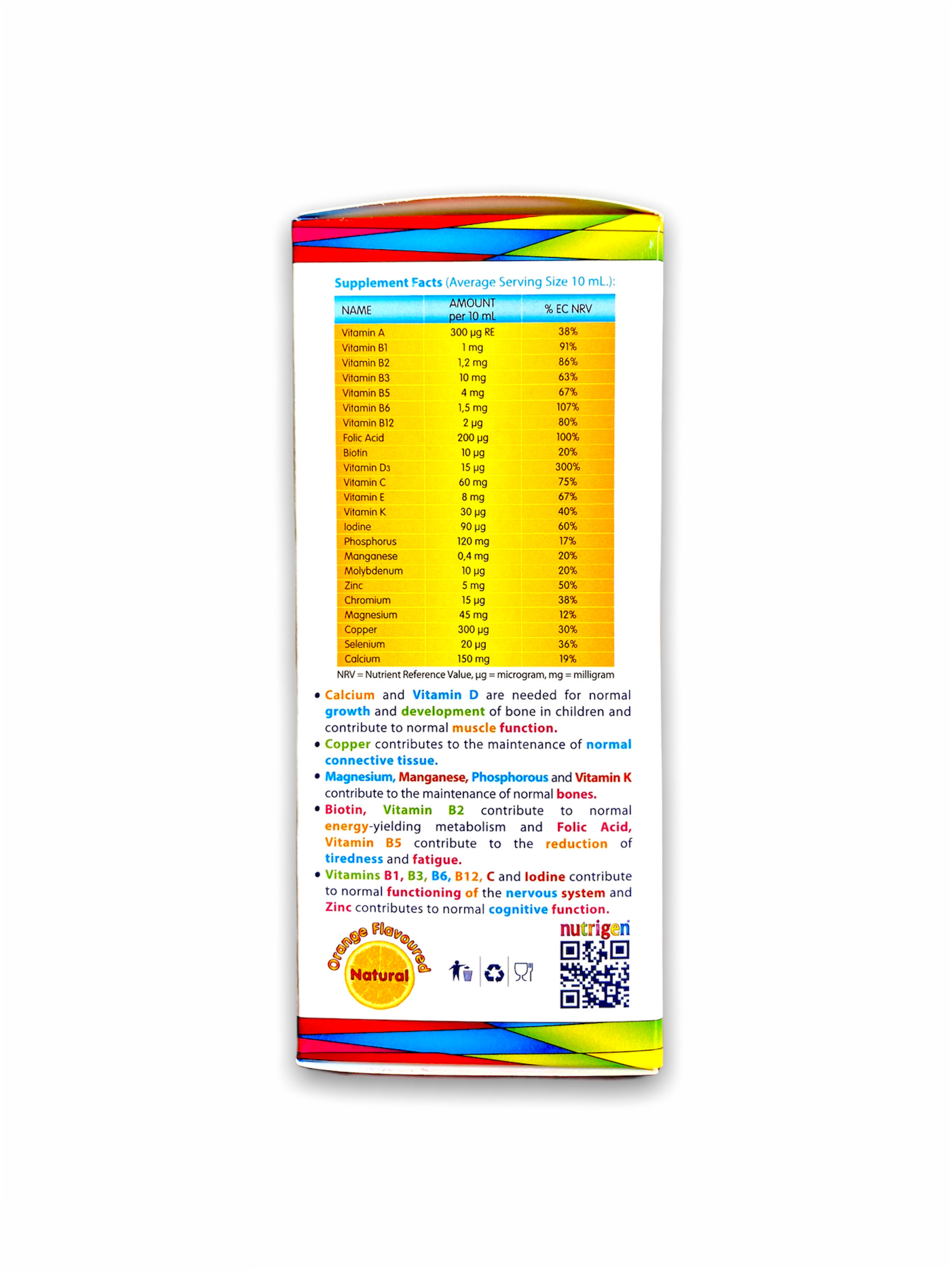 Công thức độc nhất của Nutrigen Supra Maxivitamin Maximineral Syrup cung cấp đến 13 vitamin và 10 khoáng chất thiết yếu giúp tăng cường sự phát triển, giúp trẻ lớn khỏe mạnh và hỗ trợ các chức năng của cơ thể.