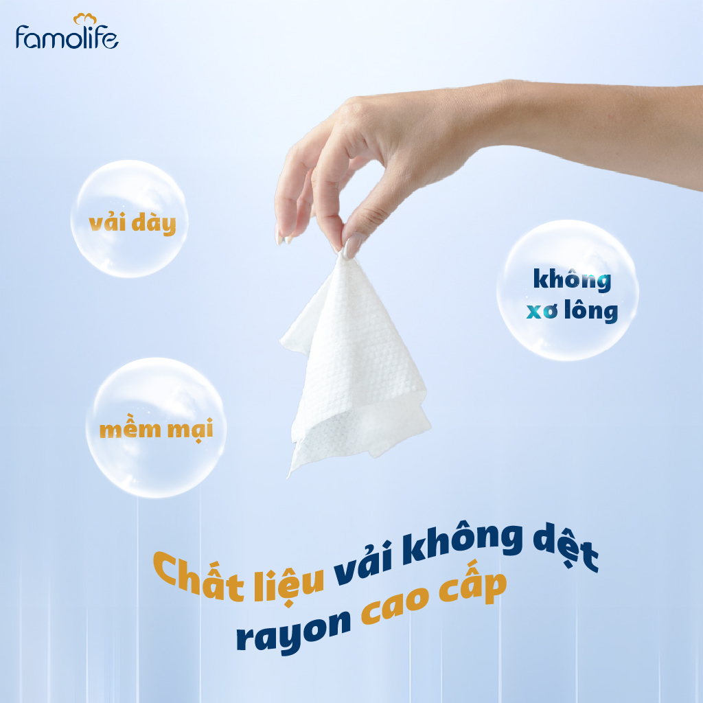 Khăn ướt Famolife 100 tờ không mùi mềm mịn, dưỡng ẩm vệ sinh cho người lớn Khăn ướt được sản xuất với thành phần hoạt chất thiên nhiên, không chứa các thành phần gây dị