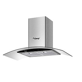 Kiểu máy kính gắn tường - mặt kính cong Chất liệu Inox - kính Màn hình LCD Điều khiển bằng cảm ứng - hẹn giờ tắt Khử mùi bằng than hoạt tính, ống thoát Ø150