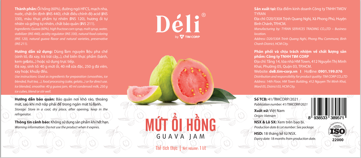 ✨Mứt ổi hồng pha chế Déli - chai 1L