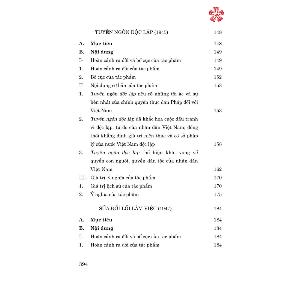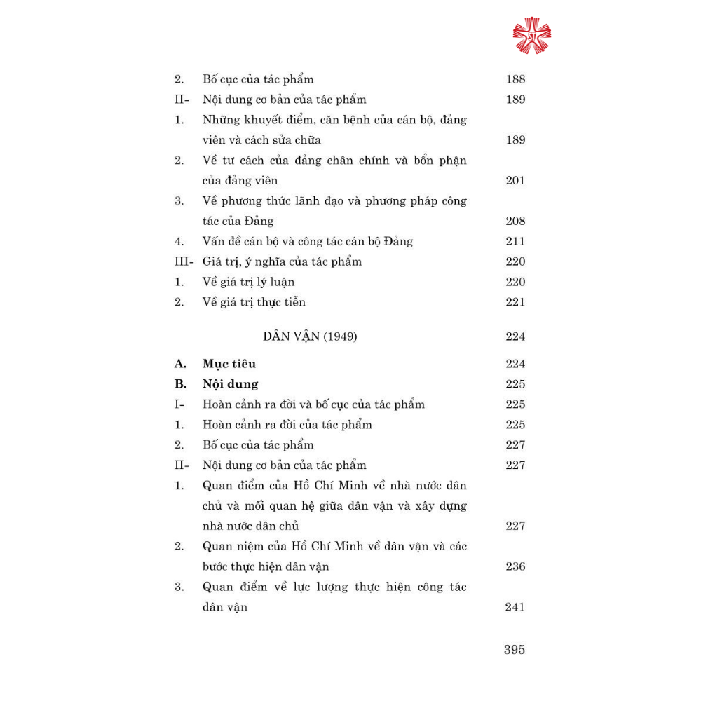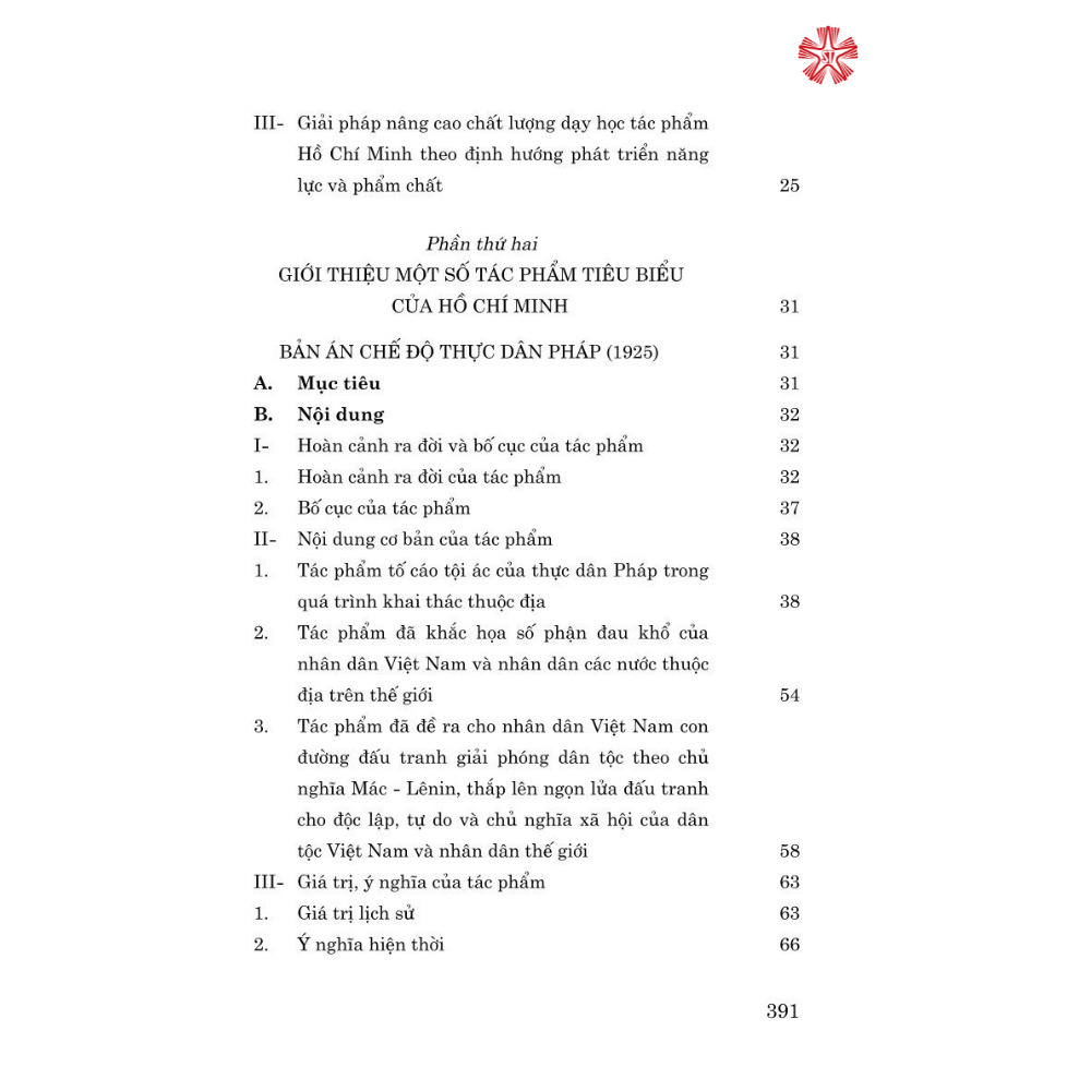 Mua tại TiktokNội dung cuốn sách gồm hai phần: Phần thứ nhất, nêu một số vấn đề lý luận chung về dạy học tác phẩm Hồ Chí Minh; Phần thứ hai, giới thiệu một số tác phẩm tiêu biểu của Hồ Chí Minh. Trong mỗi tác phẩm, các tác giả xác định mục tiêu dạy học tác phẩm (năng lực, phẩm chất), hoàn cảnh ra đời và bố cục của tác phẩm, nội dung cơ bản của tác phẩm, giá trị của tác phẩm và một số câu hỏi ôn tập, củng cố… Cuốn sách là tài liệu tham khảo hữu ích góp phần nâng cao chất lượng, hiệu quả dạy học các học phần, chuyên đề liên quan tới Hồ Chí Minh và di sản tư tưởng Hồ Chí Minh.